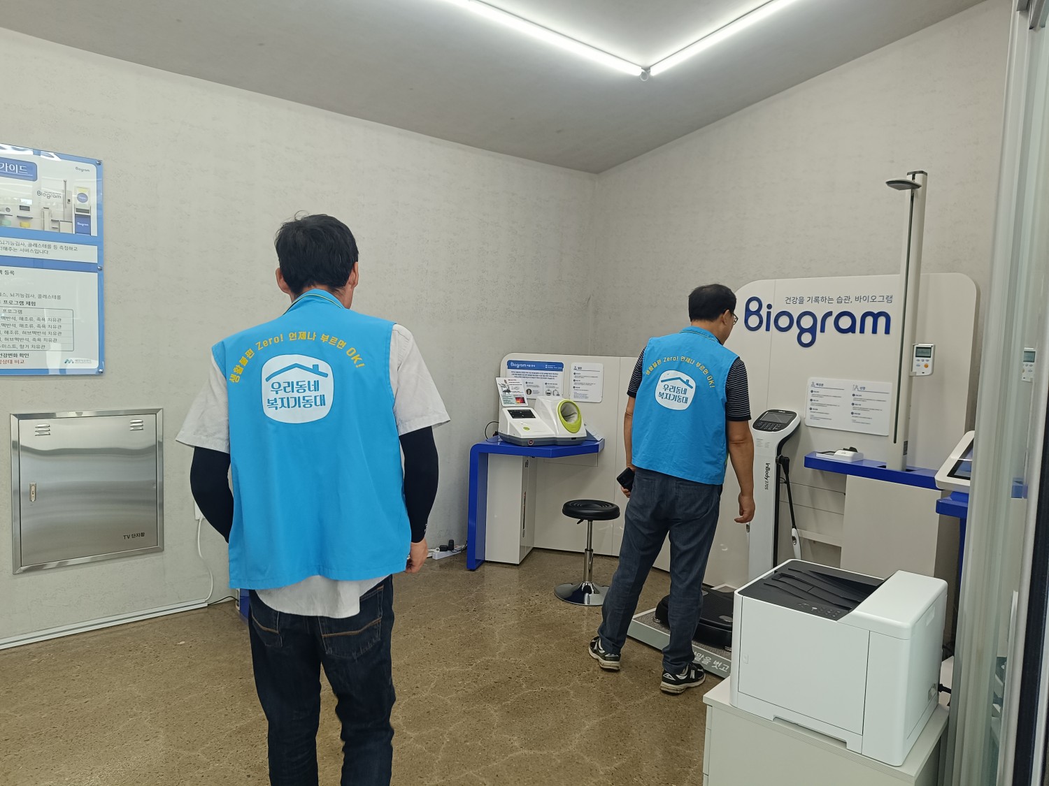 활동내용: 해양치유공원 이용객의 만족도를 높이고 쾌적한 환경을 유지할 수 있도록 복지기동대가 실내 시설물을 주기적으로 점검함.