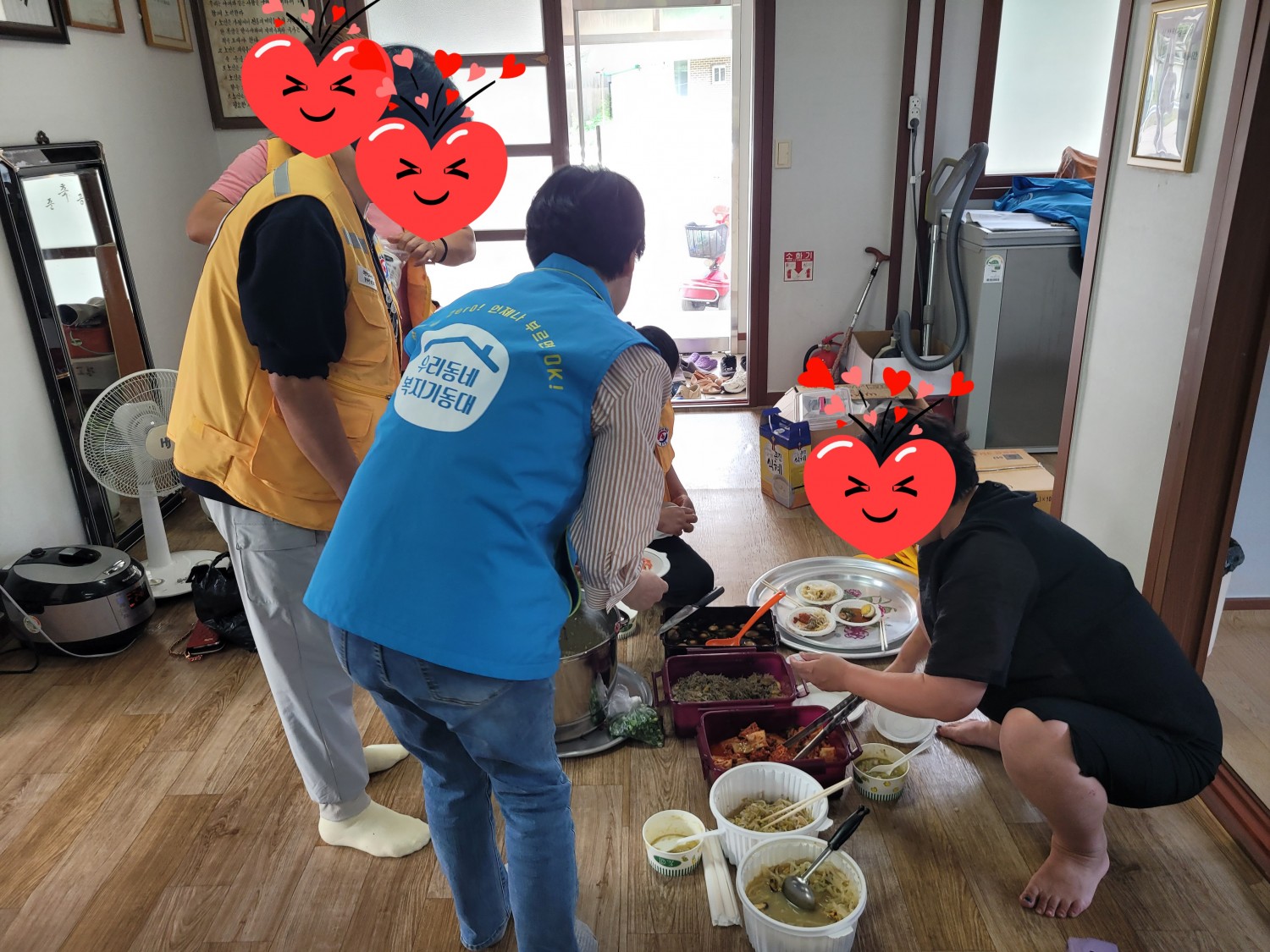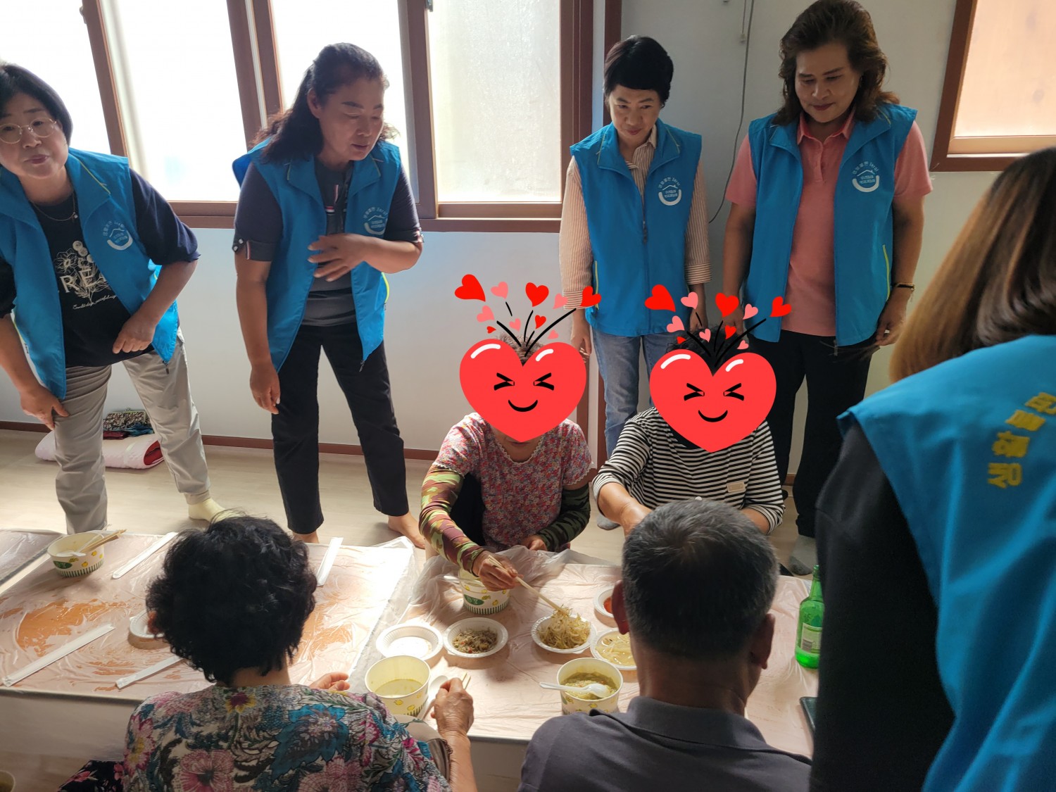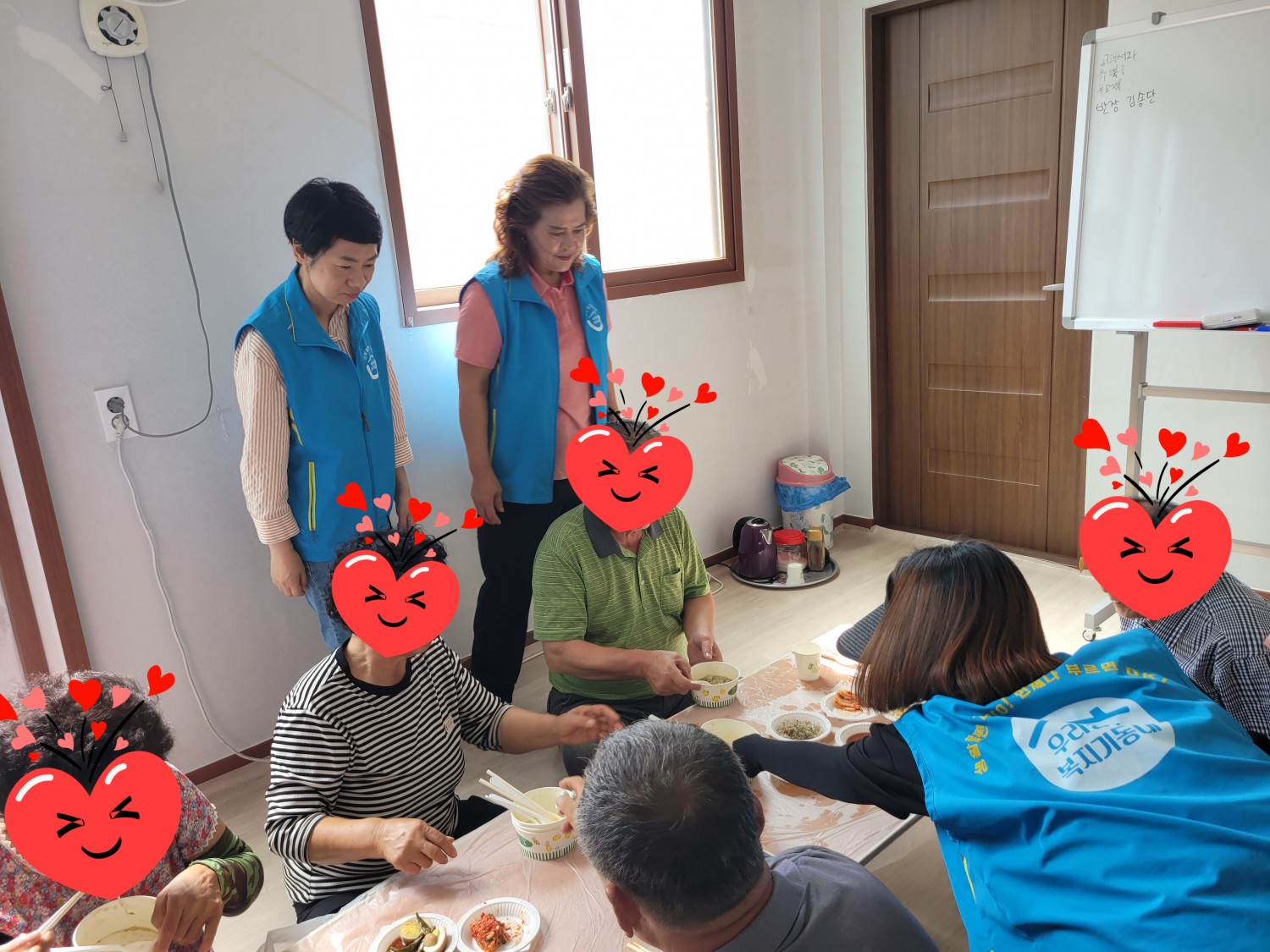 * 출장내용 : 금당적십자봉사회와 함께 정성껏 손수 만든 전복죽을 삼산리마을 어르신들에게 따뜻한 한끼를 대접하는 나눔 행사를 함.