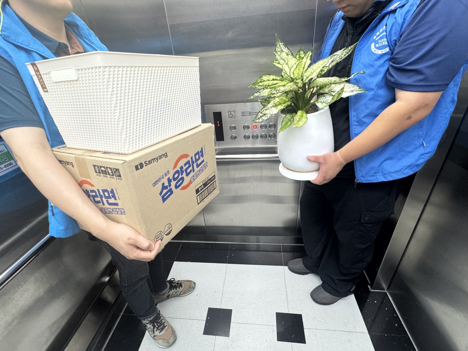 - 라면 및 화분 지원