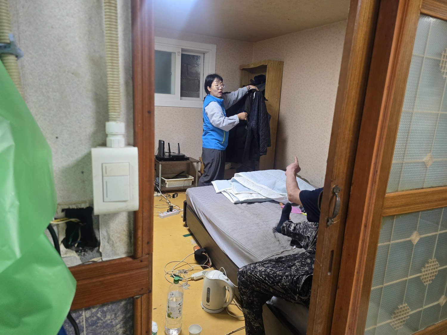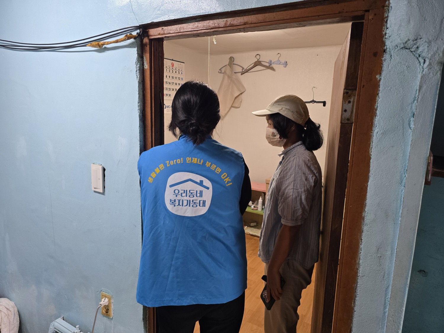국동의 복지대상자의 가정에 방문하여 안부 및 건강상태 확인을 했습니다 ?