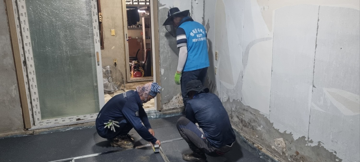 집수리 재능기부활동시 자원봉사자들의 안전사고예방교육 및 1365자원봉사포털 가입을 도왔고, 취약계층 가구의 바닥단열 및 보일러열선 설치를 진행하였습니다.