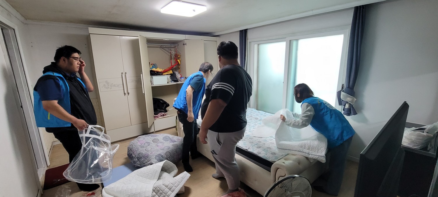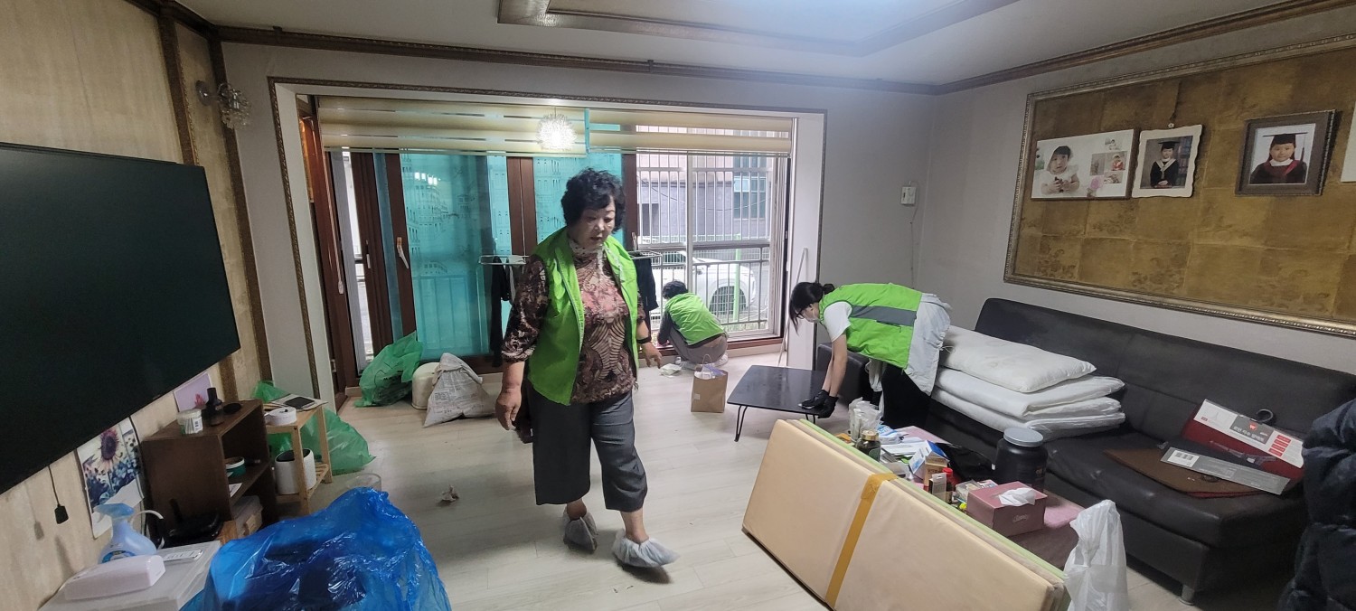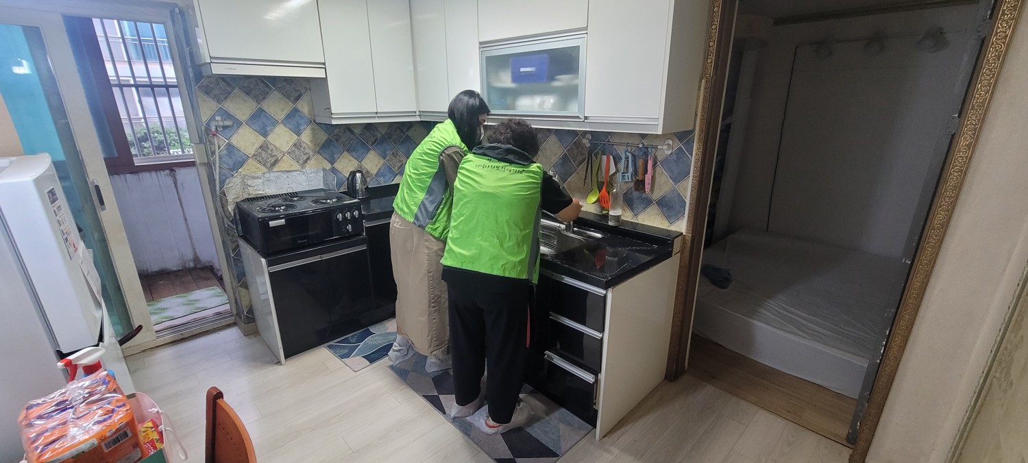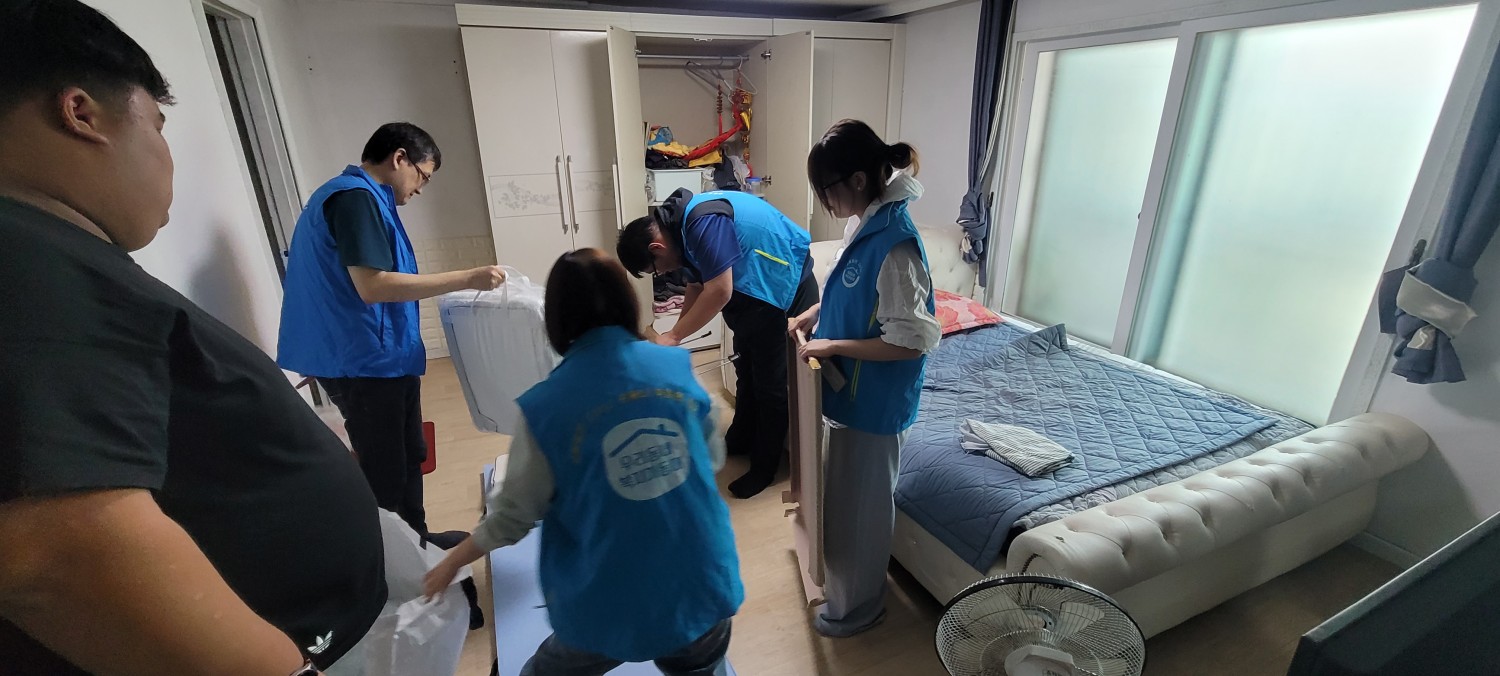 건강이 취약한 독거가구를 찾아가 집청소와 밀린 빨래 생활쓰레기 정리와 이불, 매트지원 등을 지원하였습니다