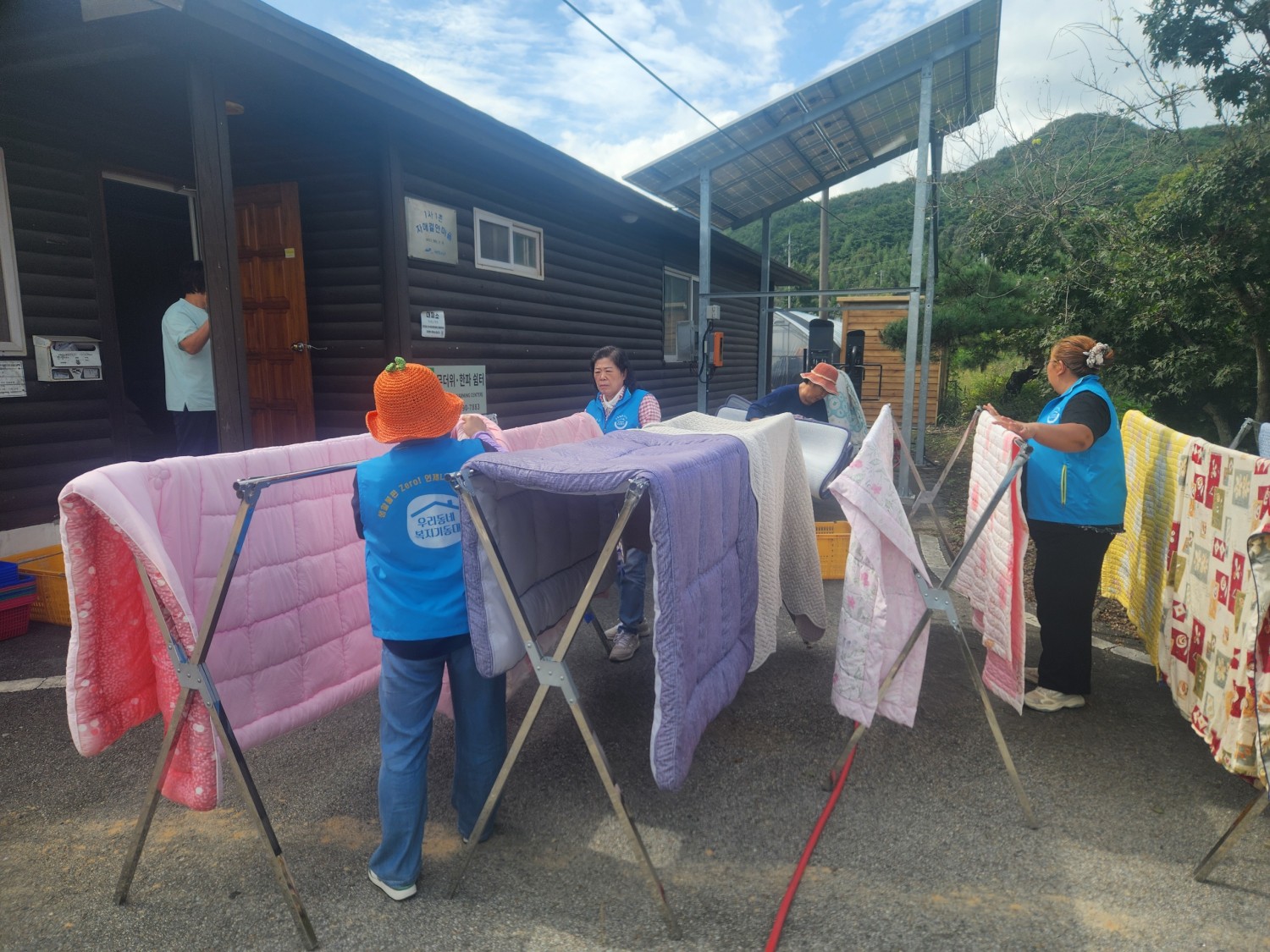마을회관에서 공용으로 사용하시는 침구류의 세탁과, 집집마다 방문하여 무게가 무거워 세탁하지 못하고 있던 침구류들도 함께 세탁하고 건조하여 쾌적한 생활을 유지하실 수 있도록 도와드렸습니다! ?