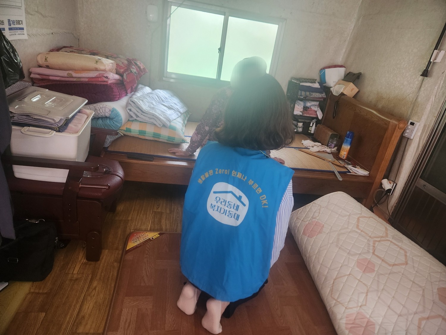 맞춤형돌봄서비스를 통해서 발굴된 사례로, 직접 만나뵈어 안부를 묻고 주택 내부 상황을 확인했으나, 천장과 벽지에 곰팡이가 피어 열악한 거주환경임을 인지했습니다.