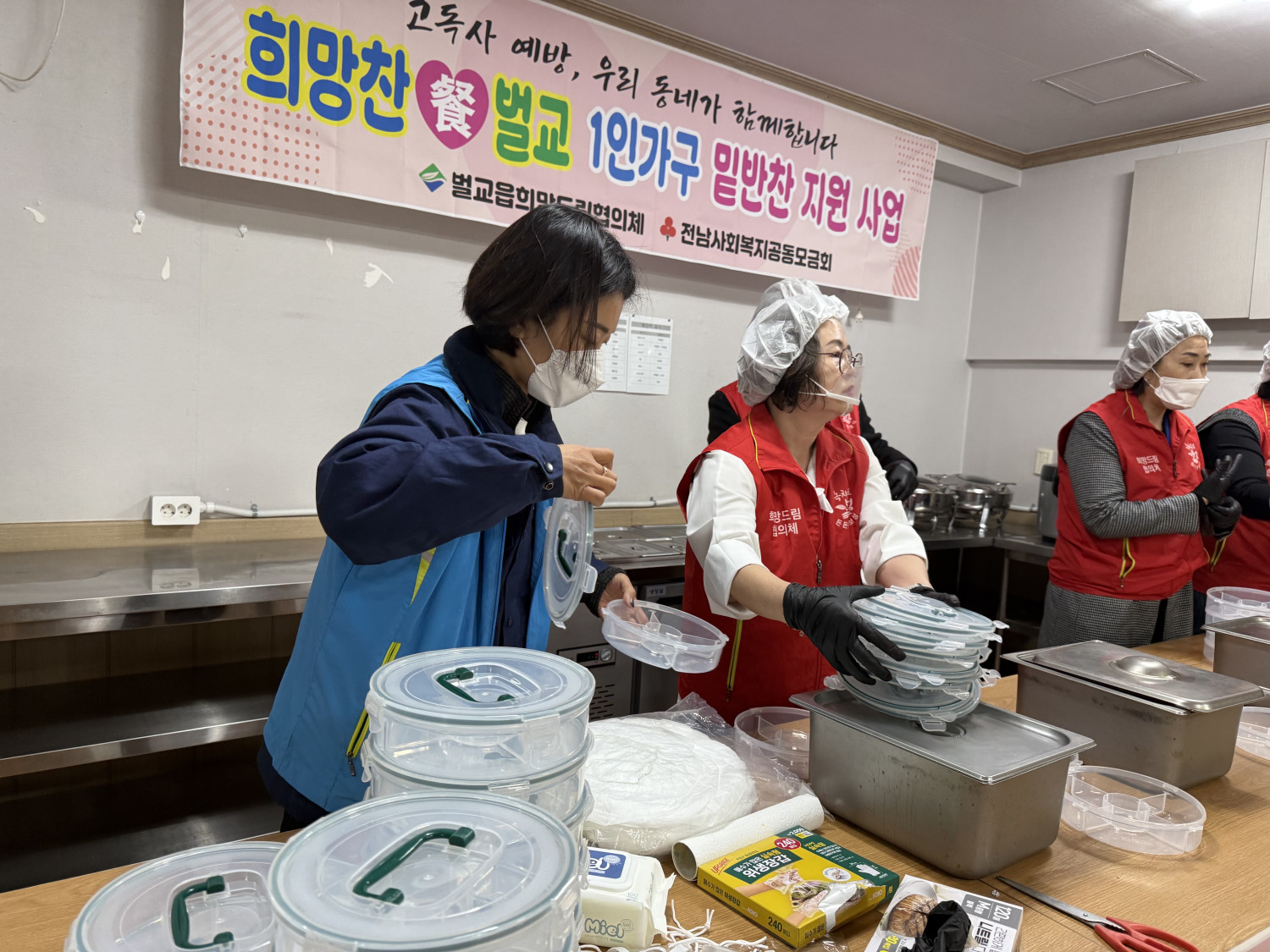 특히 밑반찬 조리 및 포장, 전달과 함께