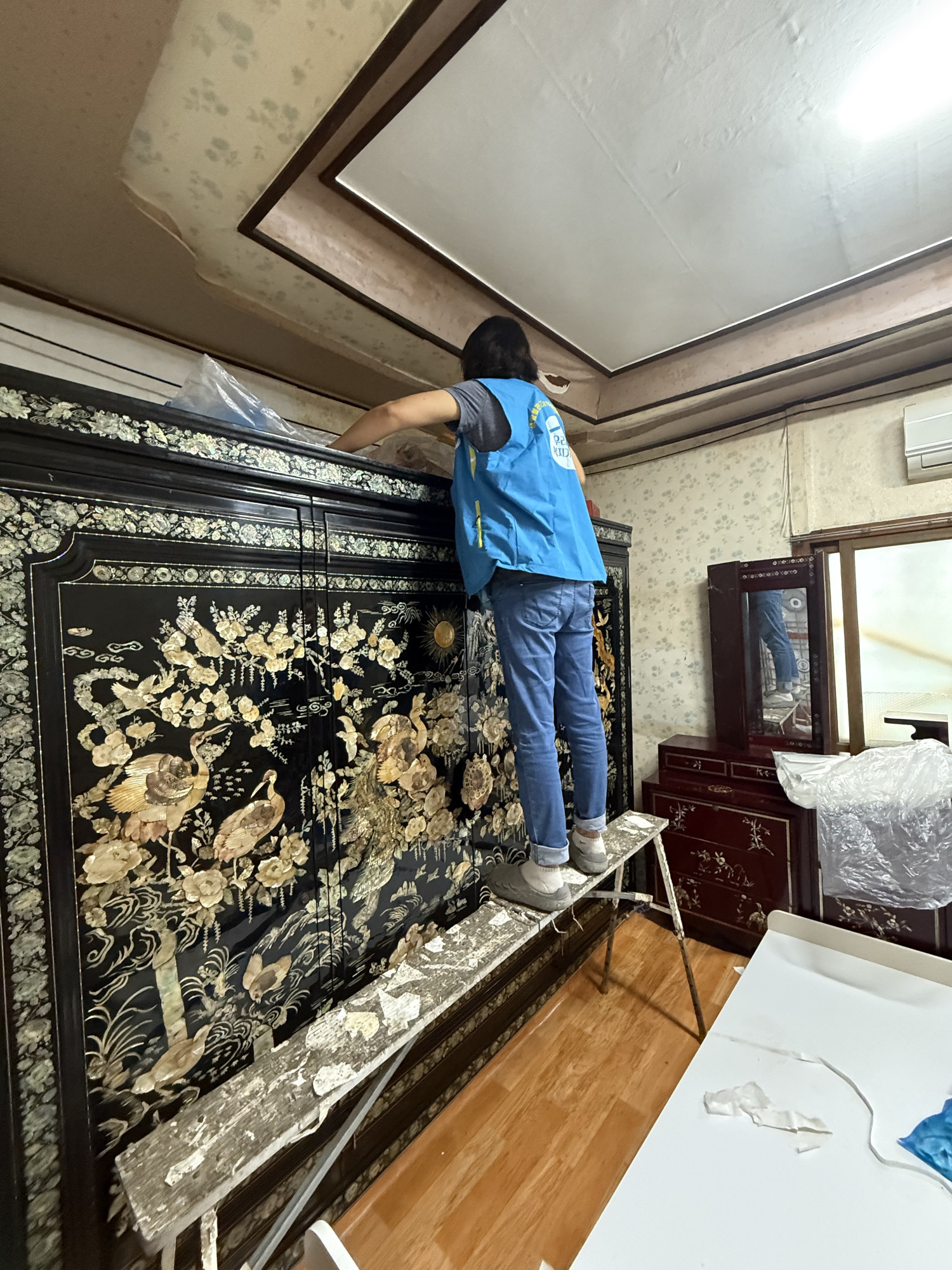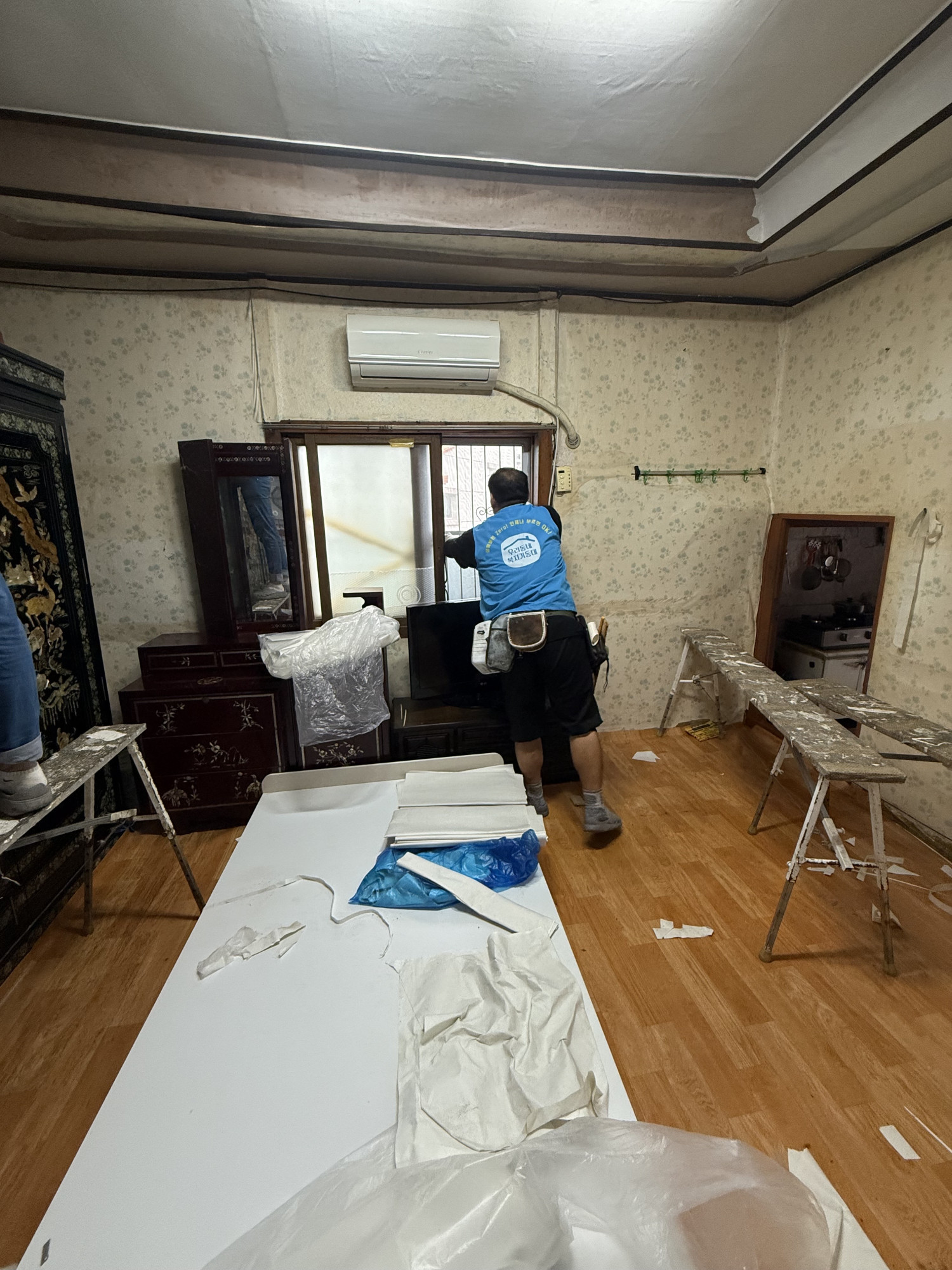 귀가 잘 들리시지않고, 무릎이 불편한 대상 어르신을 위해 복지기동대가 찾아가서 불편사항 접수 후 안방 도배장판 및 방충망 2개 시공해드렸습니다.