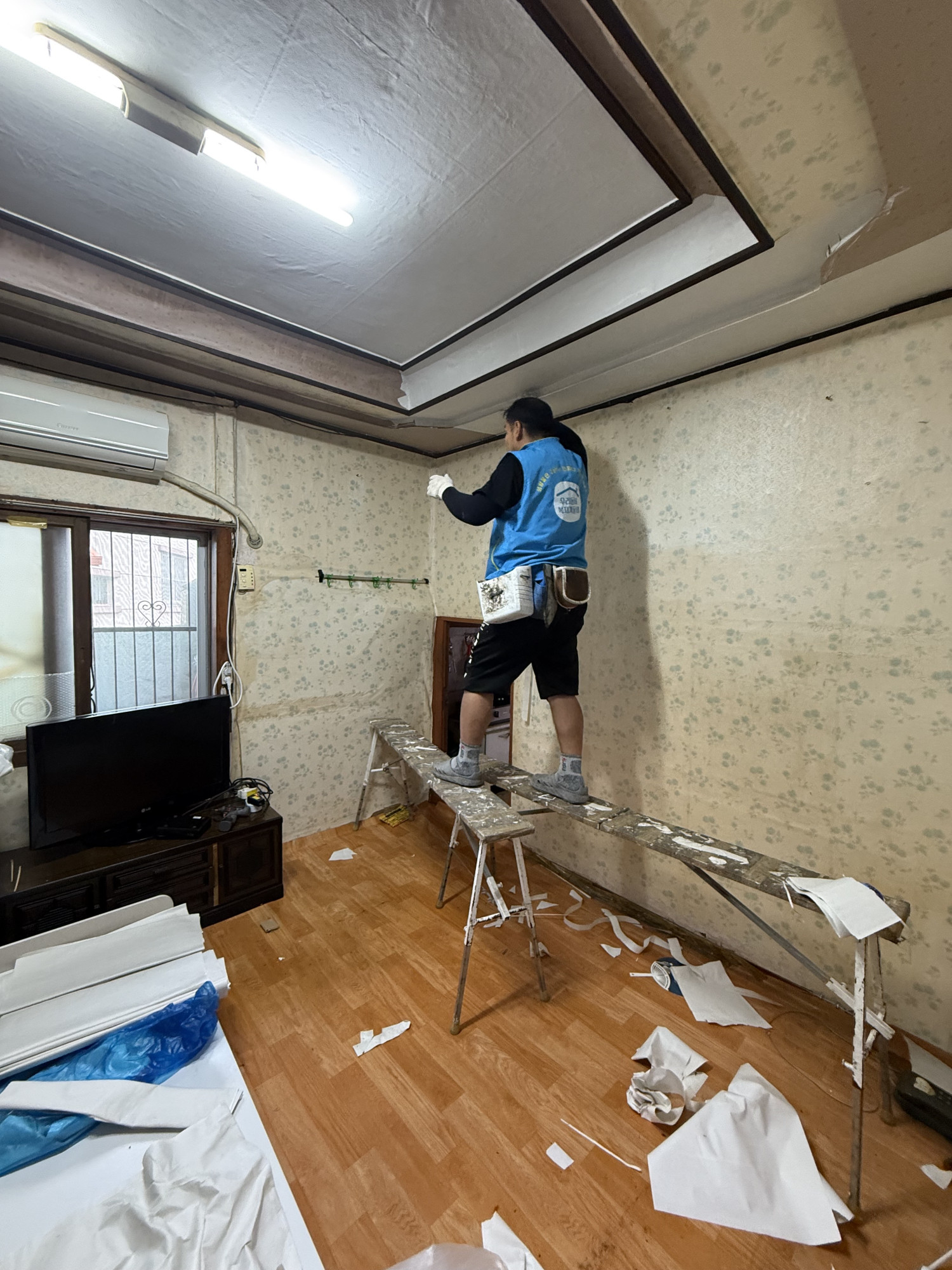 집이 오래된 옛날집이라 흙집이어서 도배하는데 기동대원께서 많은 수고로움이 있었지만 기뻐하셨습니다?