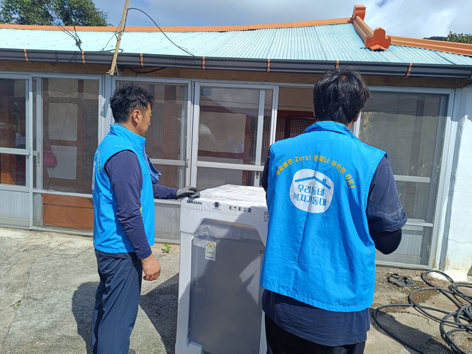활동내용:복지기동대는 취약계층 가구 어르신 댁을 방문해 오래된 세탁기를 교체해 드려 어르신의 생활 불편을 덜어드리고, 보다 쾌적하고 만족스러운 주거환경을 마련할 수 있도록 도움을 드림.