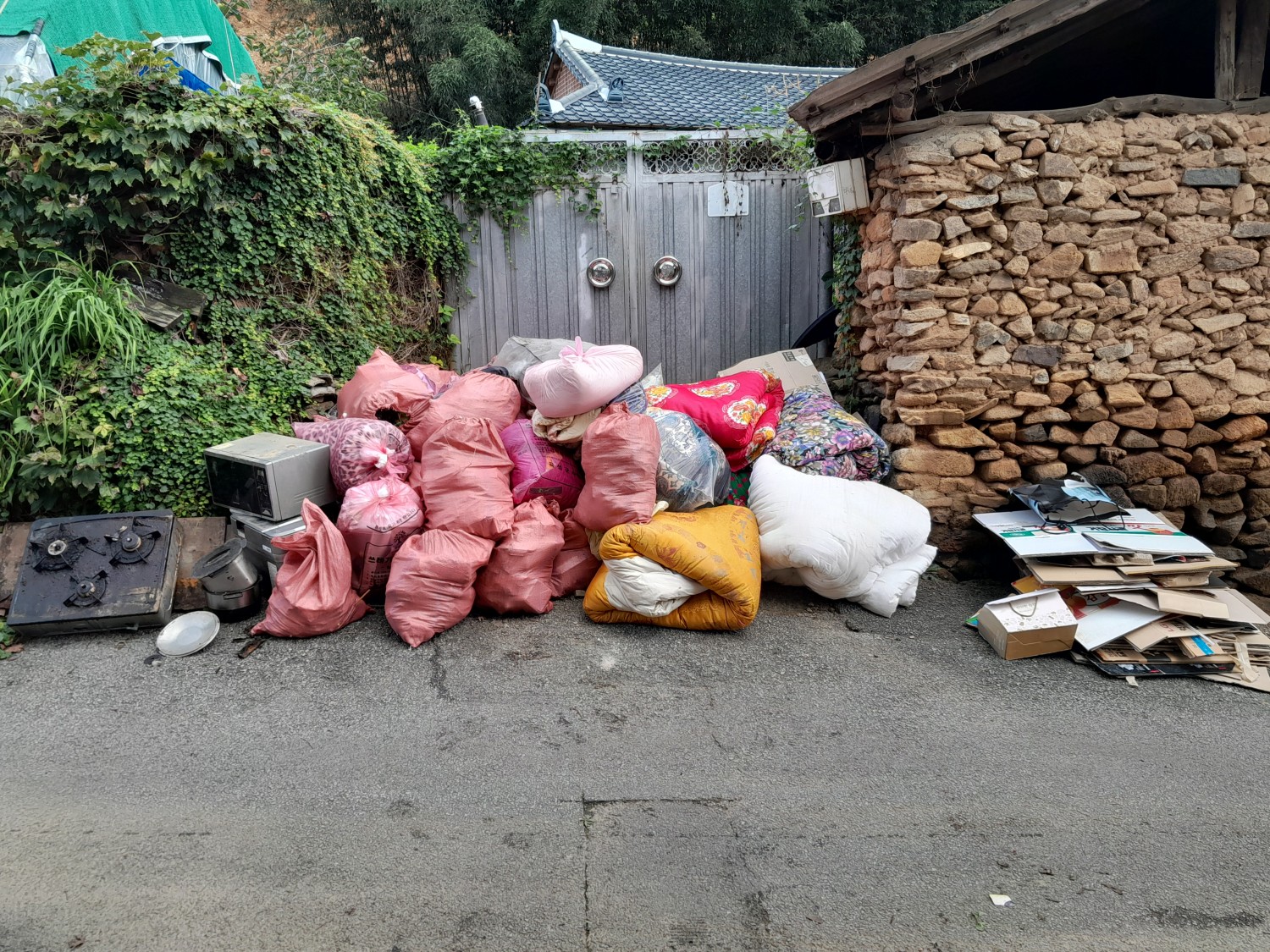 - 지원결과: 이장님과 우리동네 복지기동대원과 함께 쌓아둔 오래된 폐기물을 버리고 집 안을 청소하였고 부엌에 있는 식기등을 씻고 정리하였음.