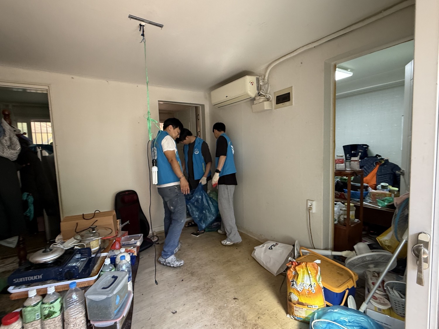 대장암 수술로 힘든 시간을 보낸 어르신께 쾌적하고 위생적인 환경을 마련해 드리고자 오래된 가구를 정리하고, 쌓여있던 먼지를 깨끗이 닦아냈습니다. 또한 불필요한 생필품도 모두 버리는 등 기동대가 힘을 모아 청소를 진행하였습니다!?☺️