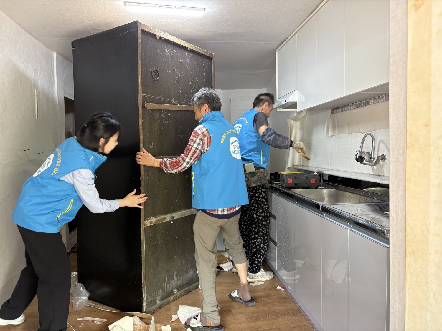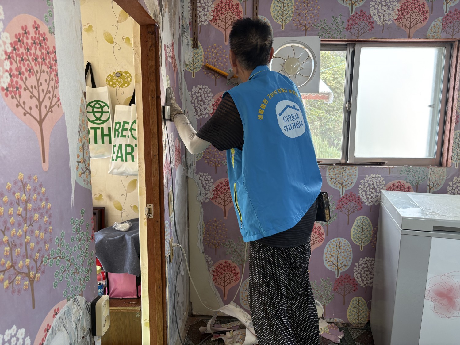 오랜기간 교체하지 않아 냄새나고 낡은 도배,장판과 씽크대를 새롭게 교체하여 어르신께는 쾌적한 주거환경을,