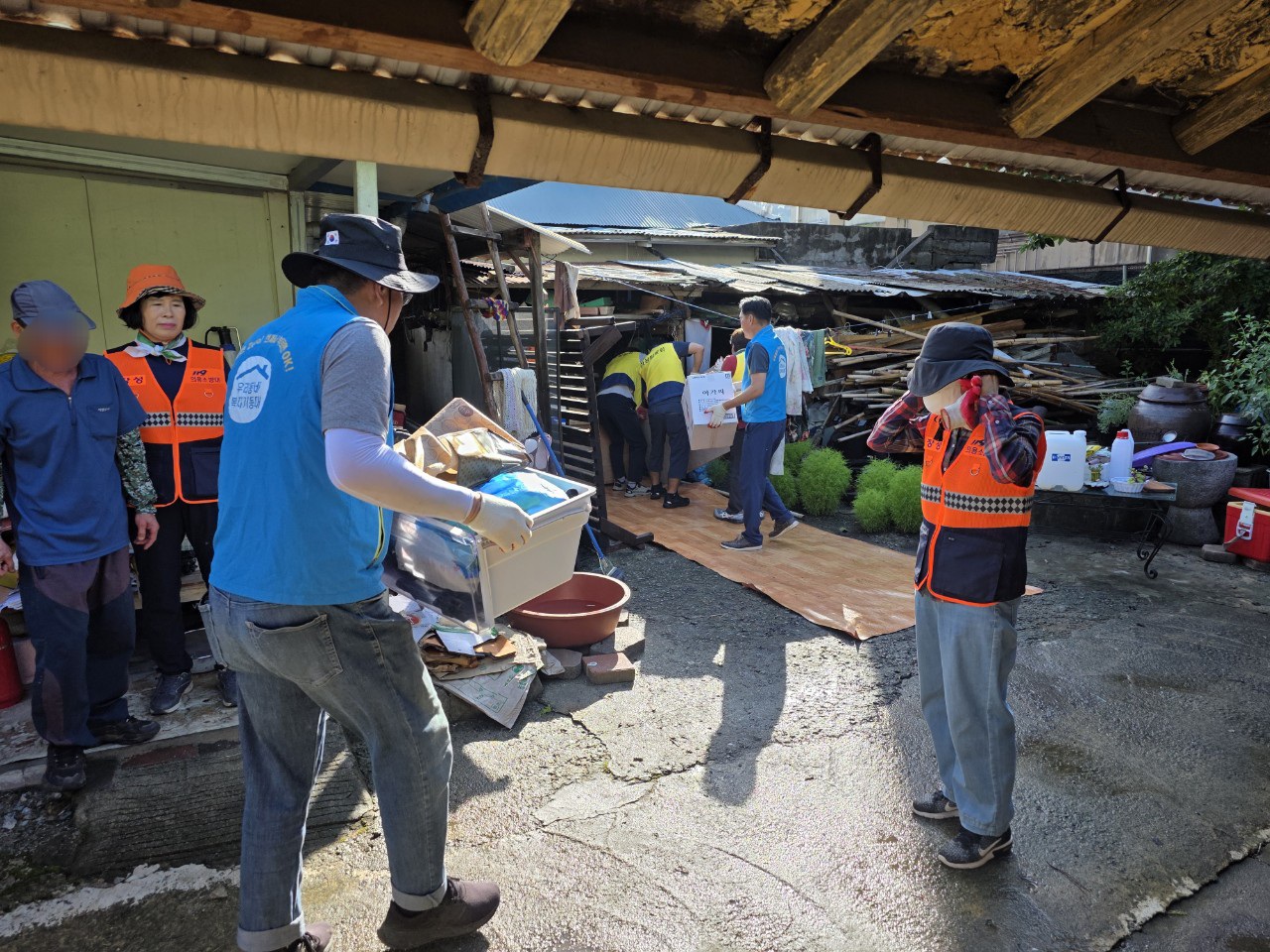 집중호우로 큰 피해를 입은 장성군 매화동의 침수된 가옥에서 어려움을 겪는 어르신을 돕기 위해 우리동네복지기동대가 출동했습니다.