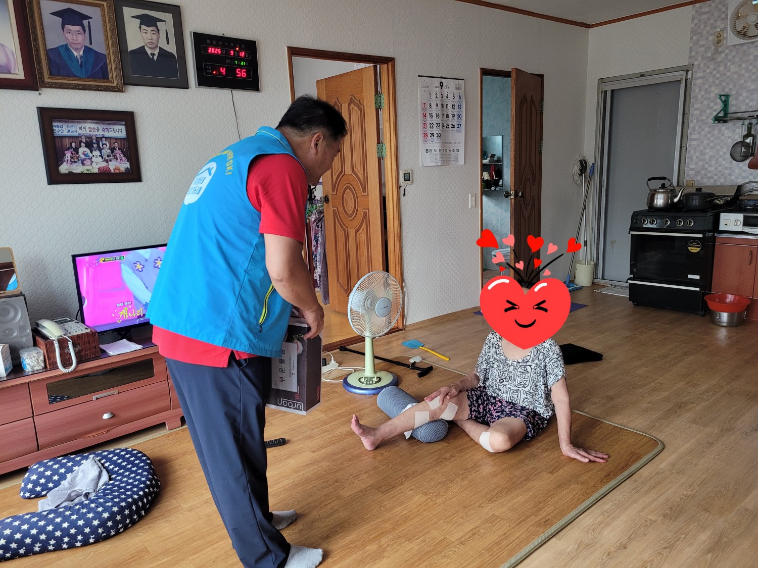 * 출장내용 : 최근 무릎관절 악화로 혼자서는 보행에 많은 어려움이 있음. 요양보호사가 방문시간에 맞춰 식사 및 청소 등 보살피고 있으나 24시간 누군가의 도움 없이는 일생생활에 어려움이 있어 금당행복의 집(노인공동생활가정) 안내 및 입소권유 함.