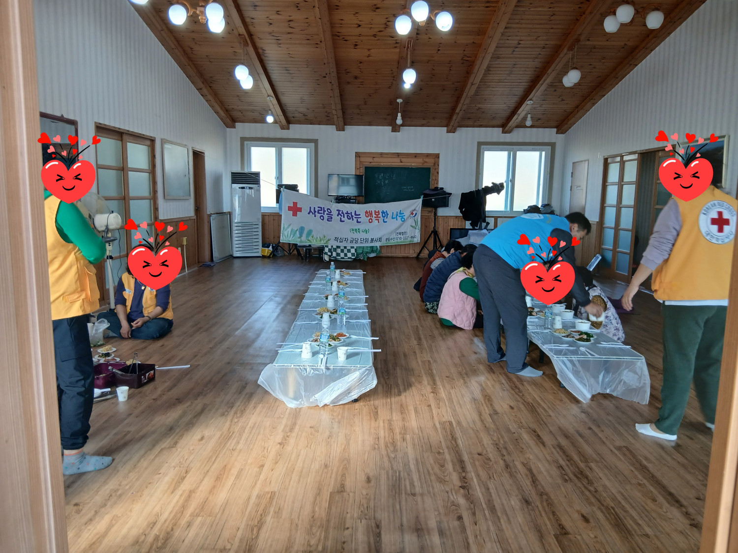 * 출장내용 : 금당적십자봉사회와 함께 손수 정성껏 만든 전복죽을 신흥리마을 어르신들에게 따뜻한 한 끼를 대접하는 나눔 행사에 참여함.