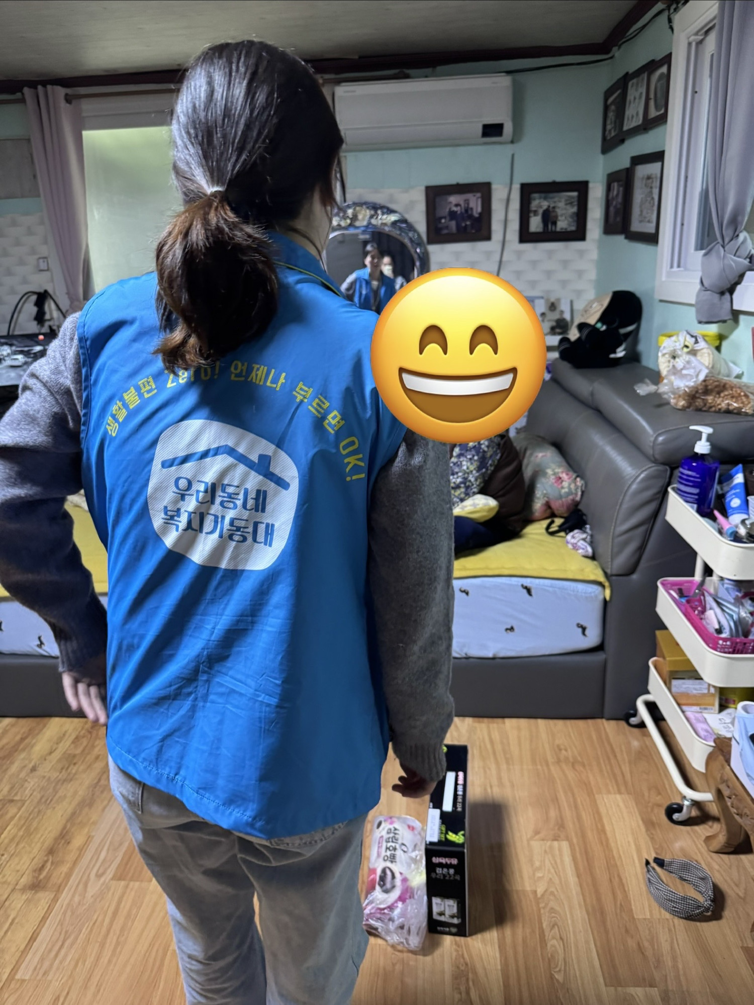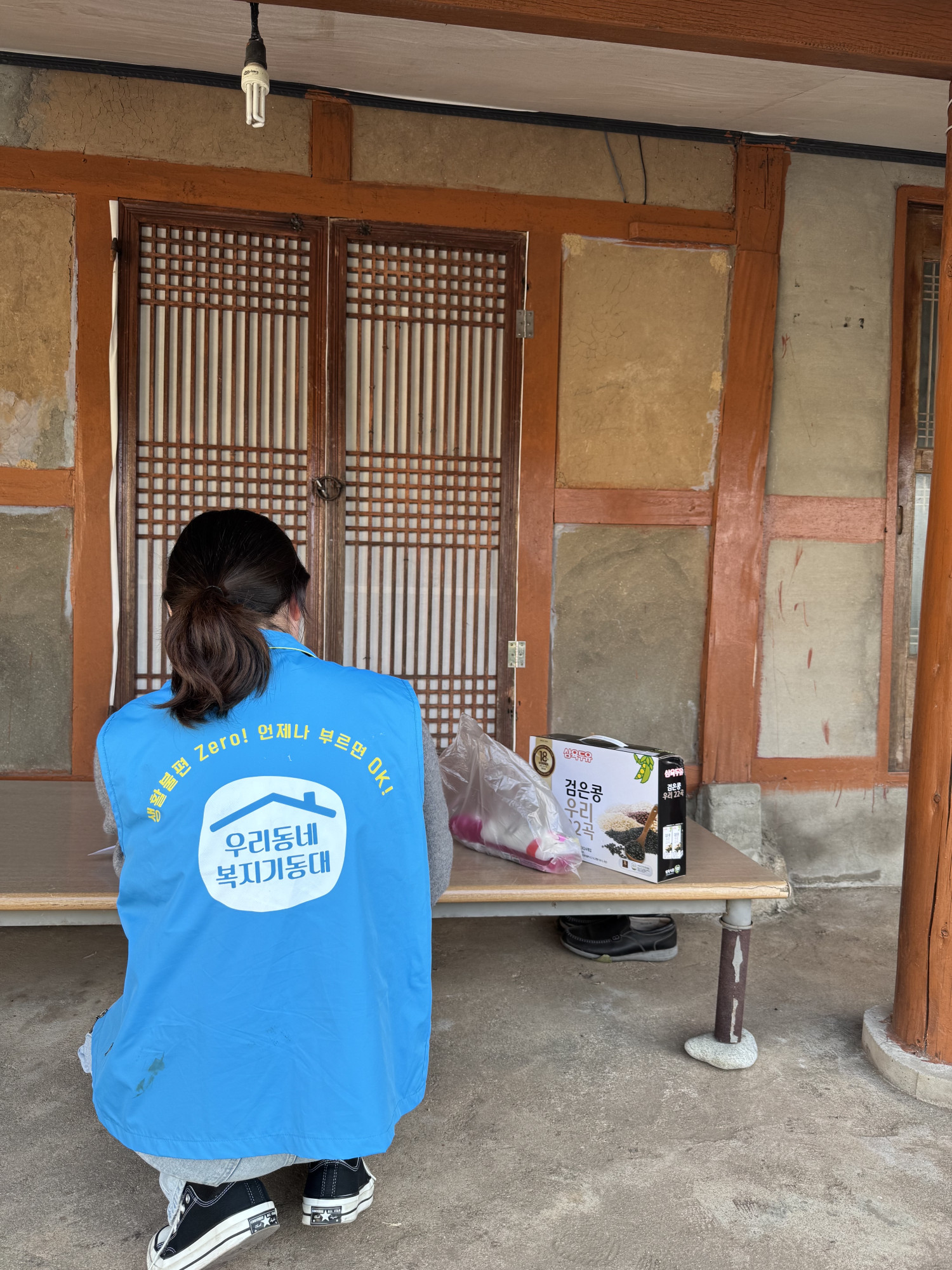 # 내용: 독거노인 생필품 전달, 안부확인, 생활환경 및 필요 복지서비스 조사