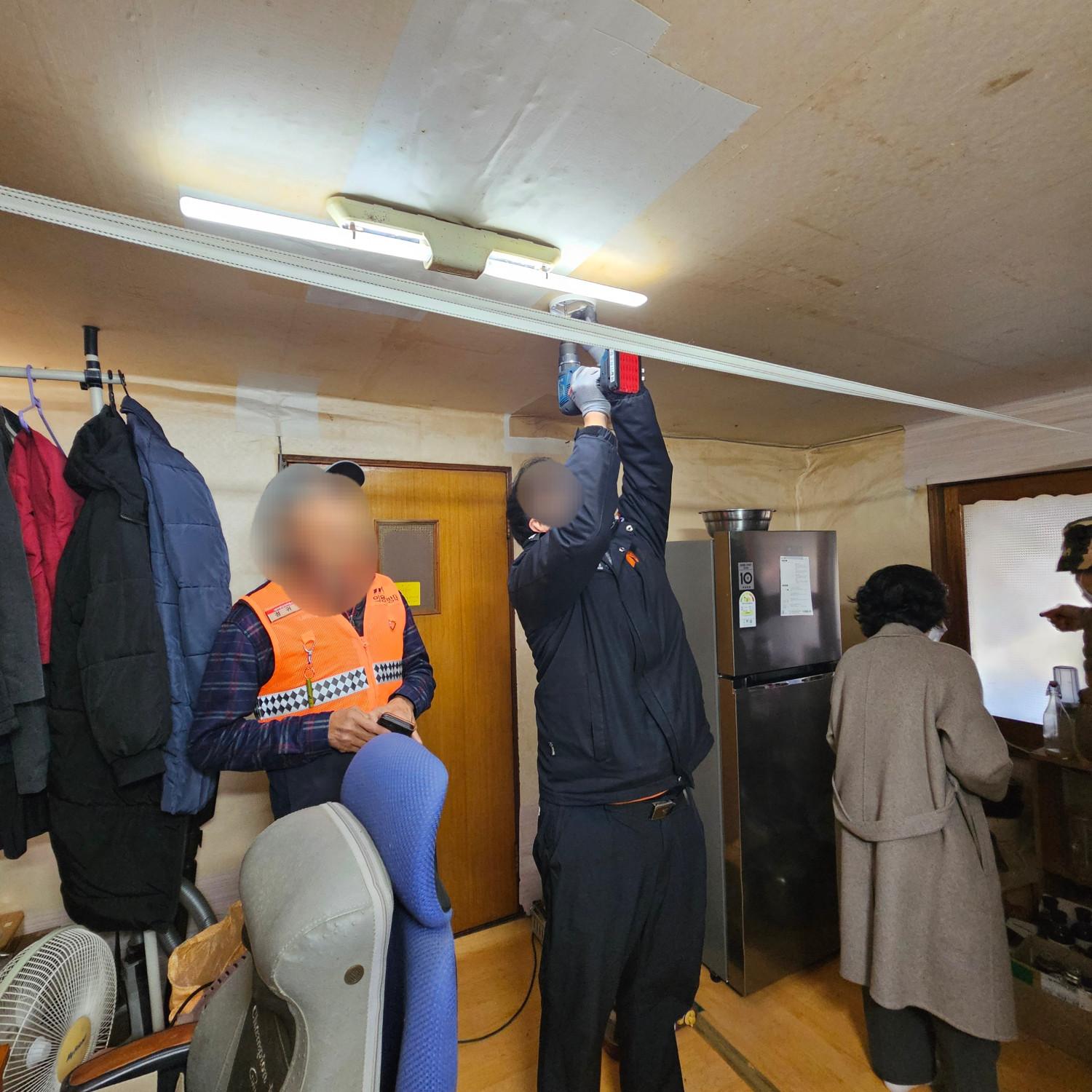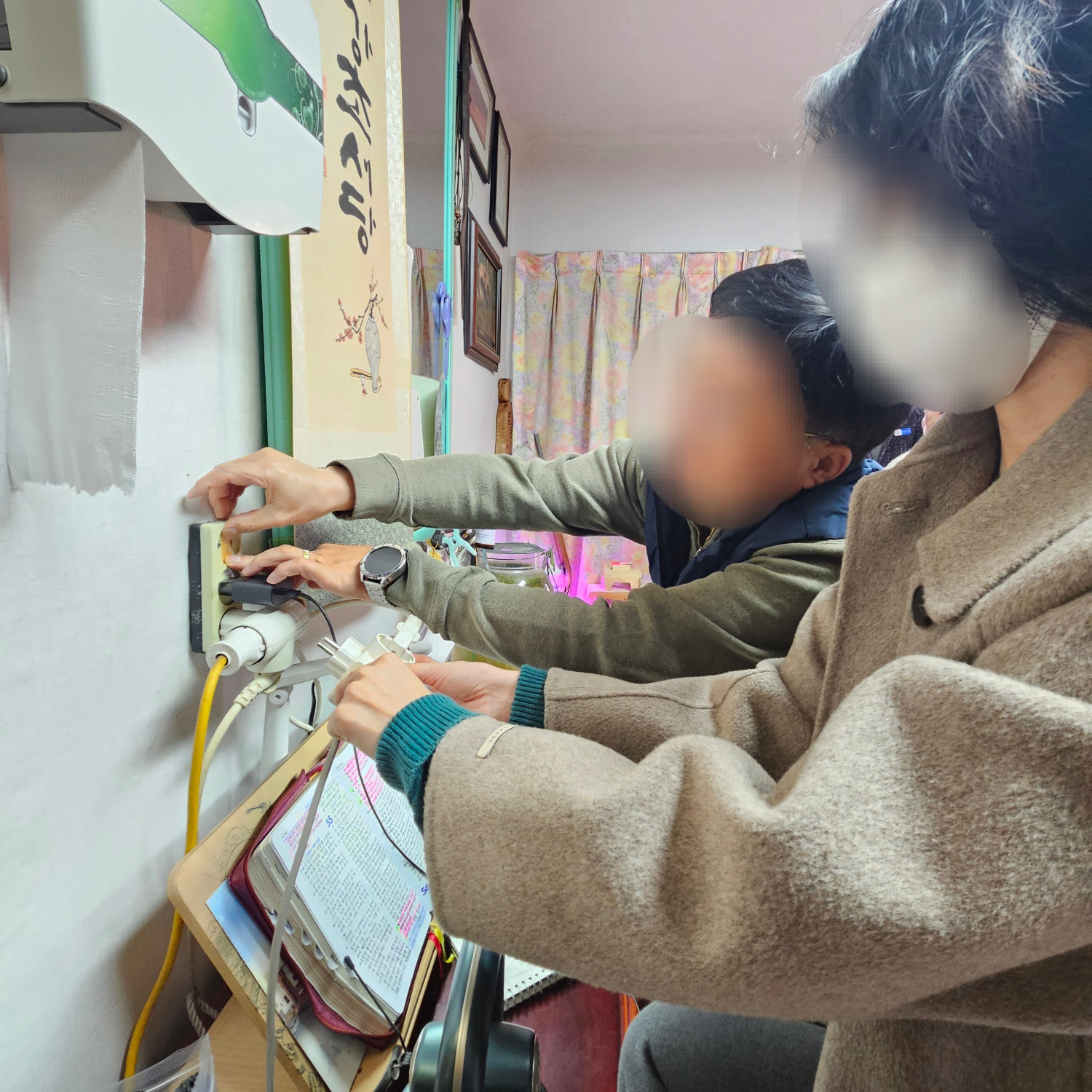 연초에 시행했던 전열기구 사용실태 조사 결과에 따른 화재 위험 가구들을 대상으로 누전차단 멀티탭 교체 및 소화패치 부착 활동을 시행하였습니다.