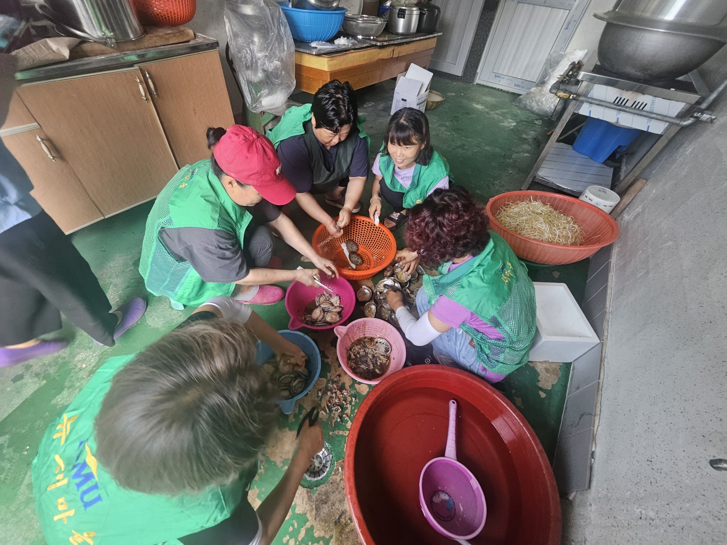 군 복지정책과와 현산면복지기동대, 새마을부녀회가 함께 어르신들께 대접할 영양만점?전복 죽을 준비 하였습니다 ?