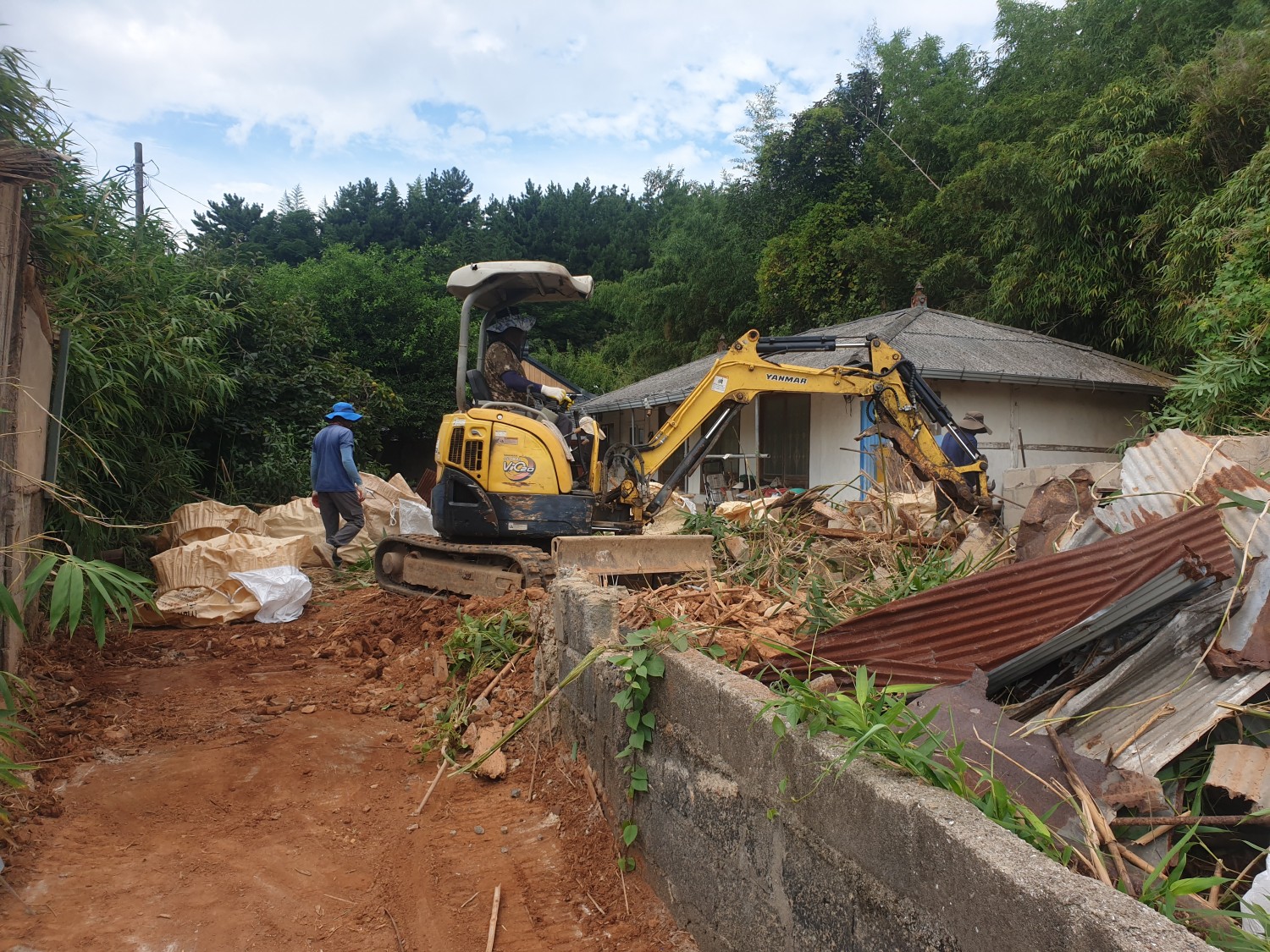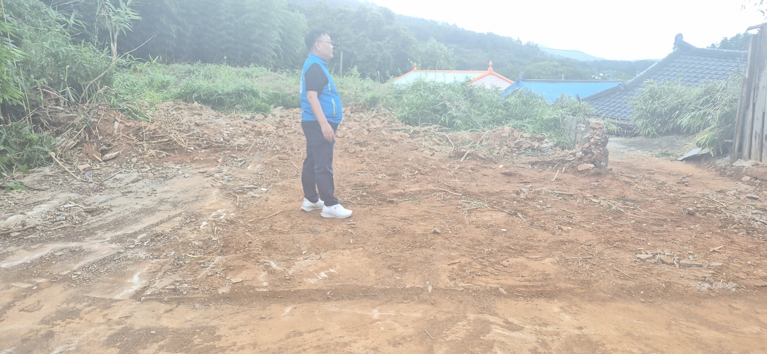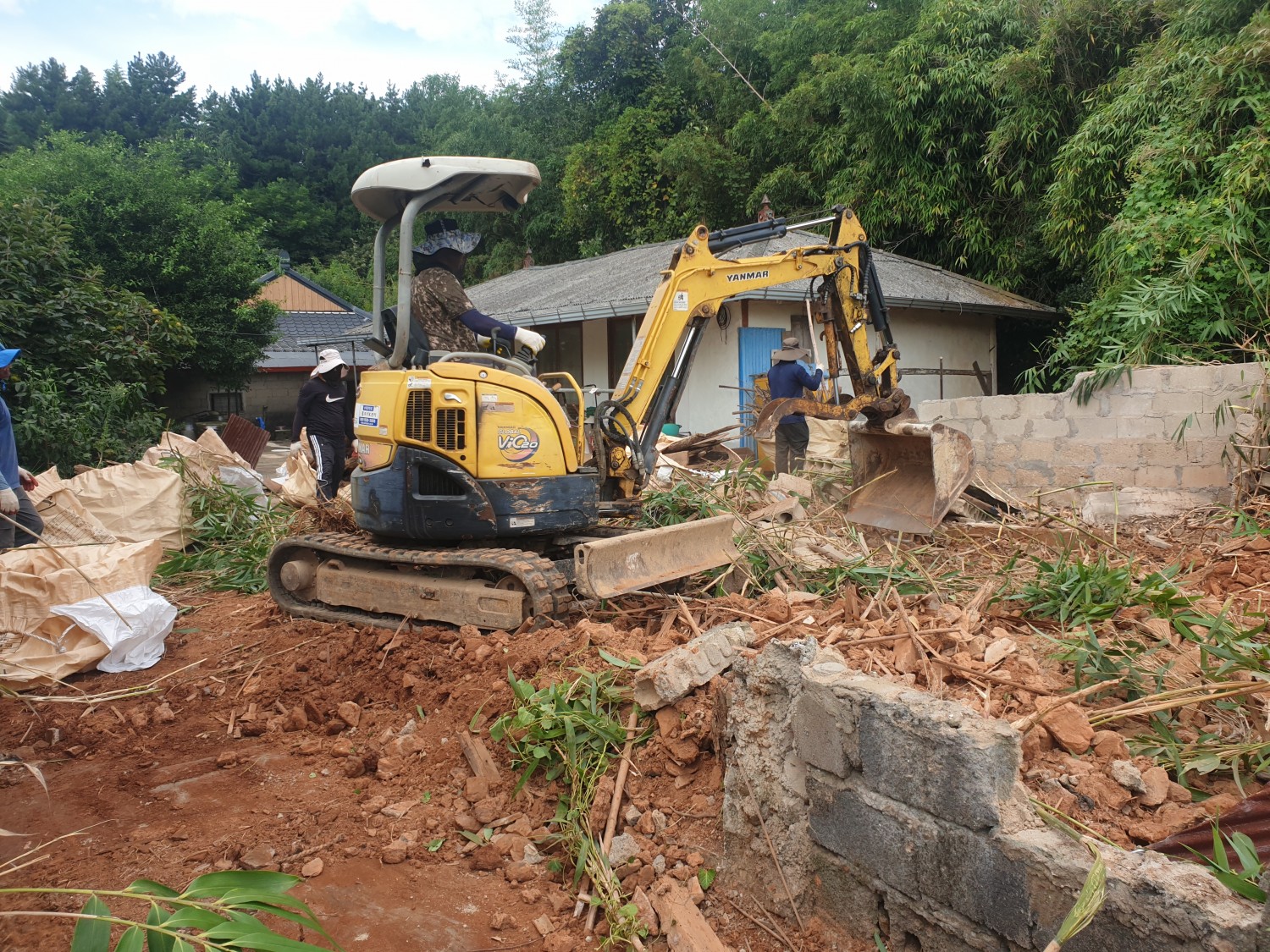 내용: 집중호우로 행랑채가 붕괴된 독거노인 가구에 건물 구조물 잔해를 철거 후 현장 점검하고, 안부살피기 진행함.