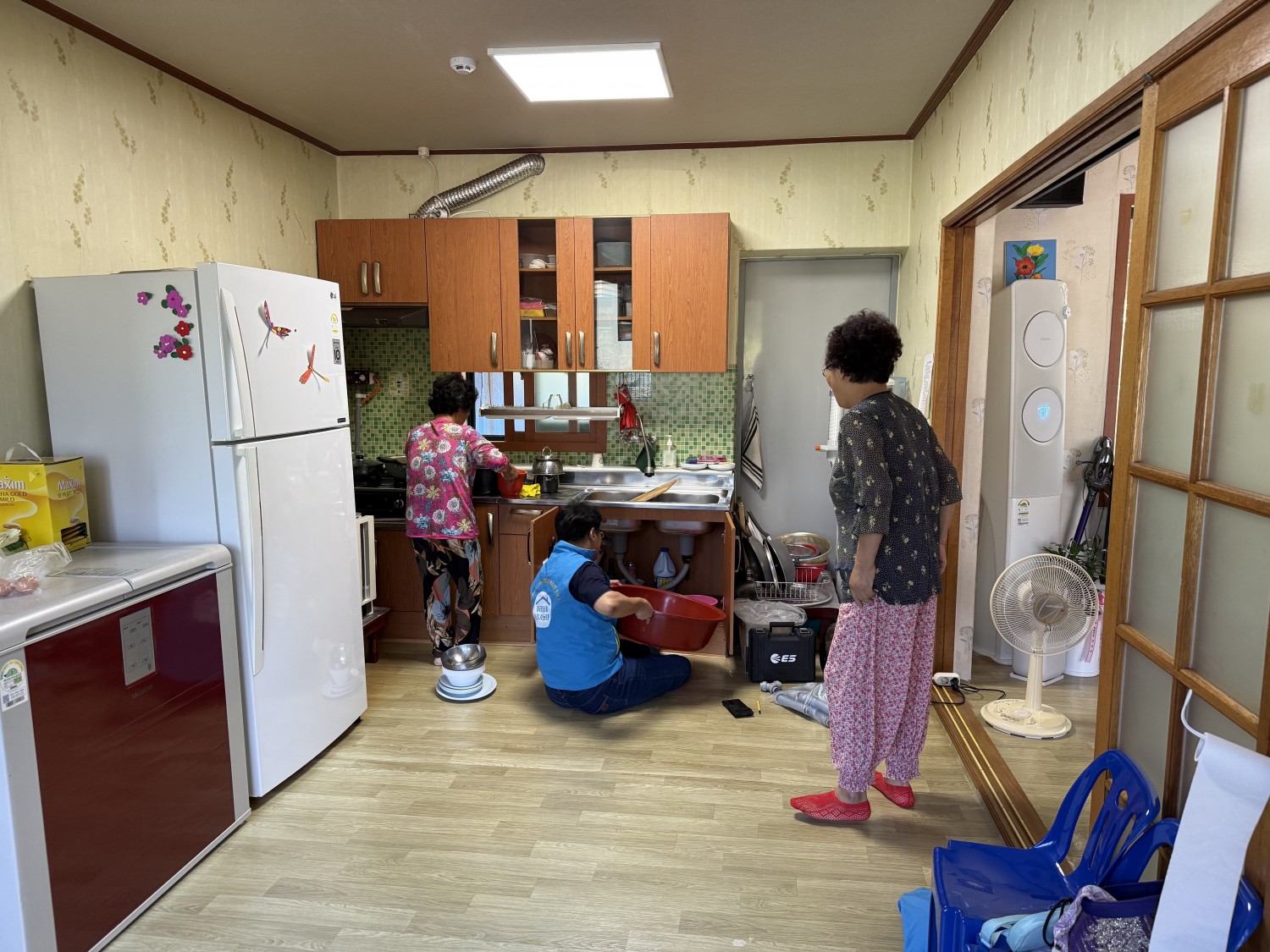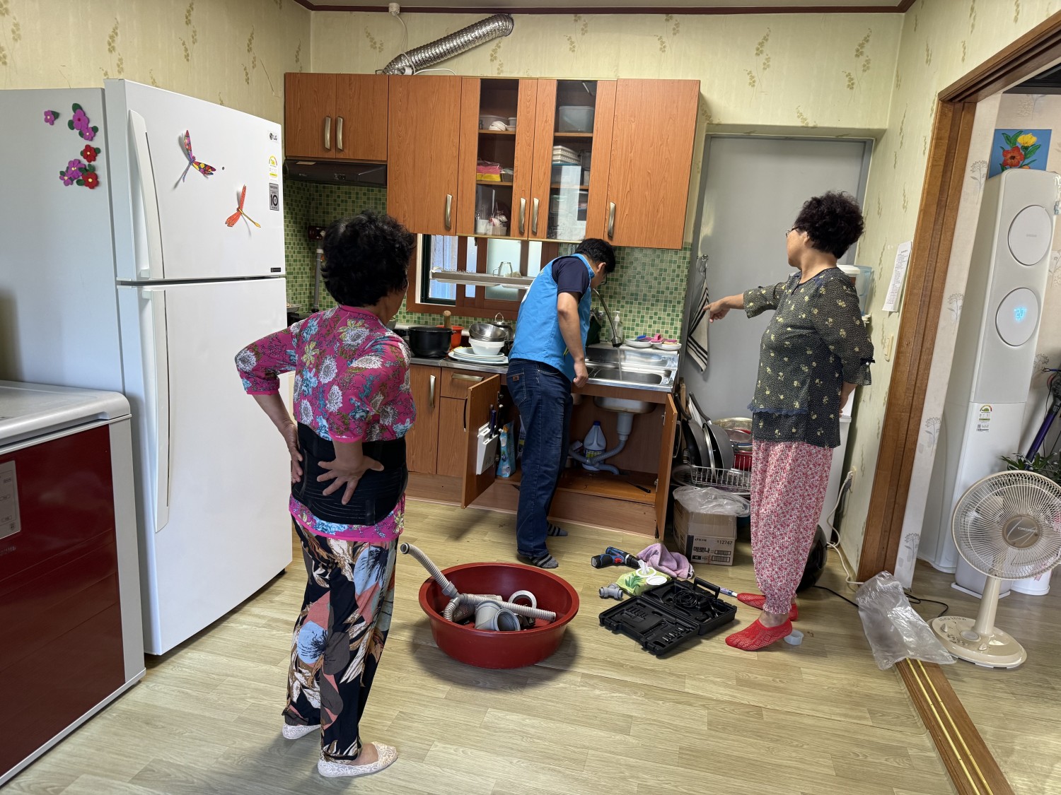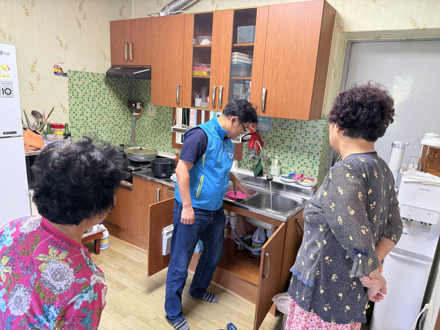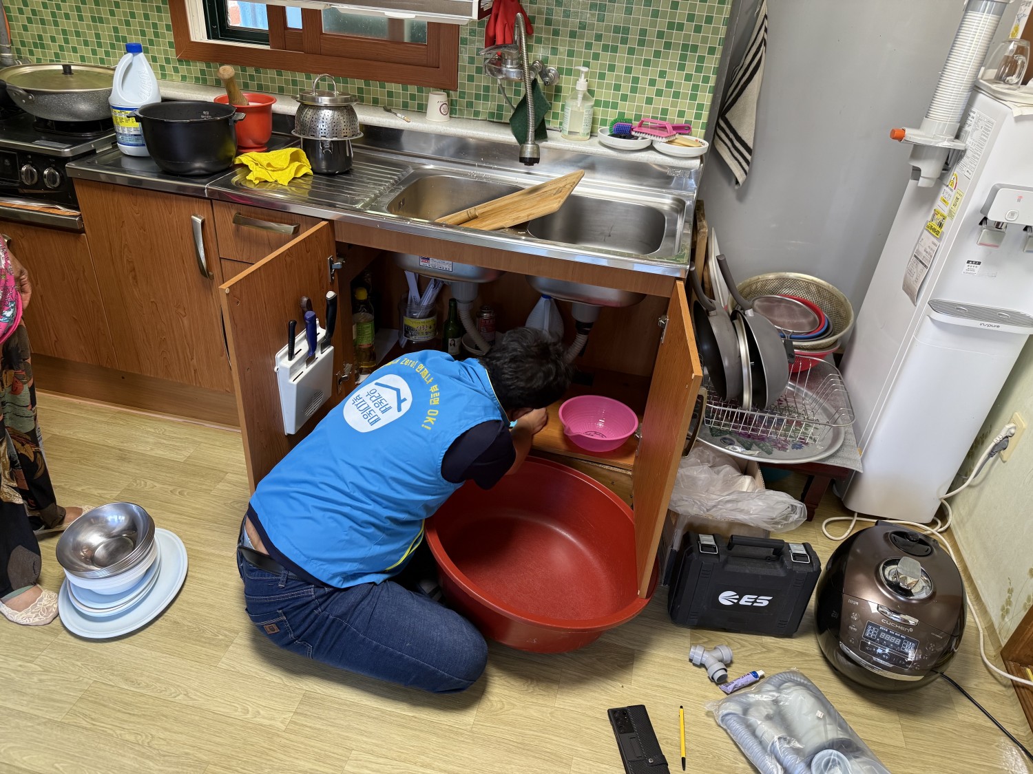 *상황: 경로당 싱크대 배수관 물 샘 문제 발생