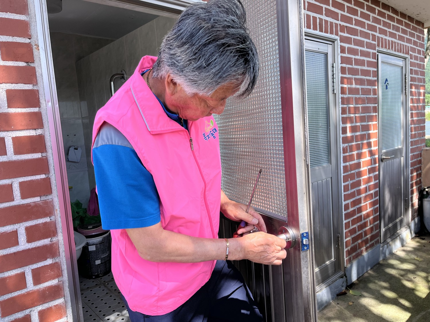 ?계곡면 복지기동대는 경로당 어르신들이 화장실 문 손잡이가 고장났다는 소식을 듣고 현장으로 출동했습니다.?♂️