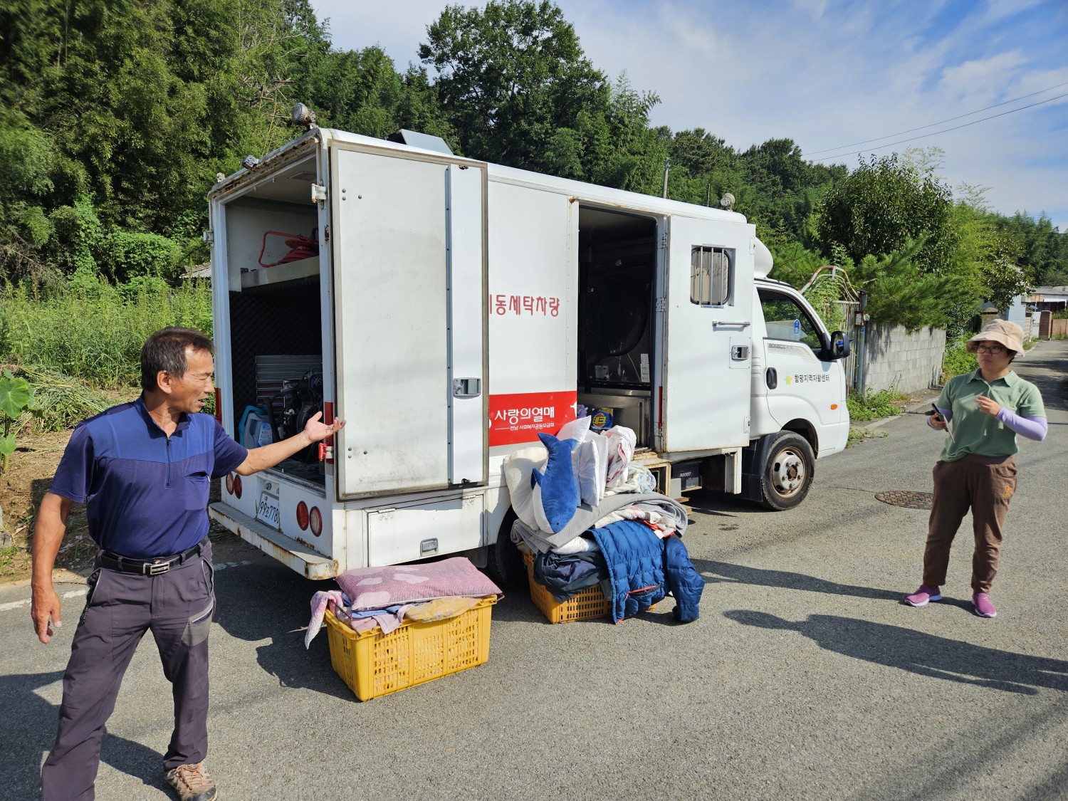 대량으로 세탁을 할 수 없었던 대상자(한부모, 조손가정)를 위해 함평지역자활센터와 협조하여 이불, 외투 등 세탁해드렸습니다.