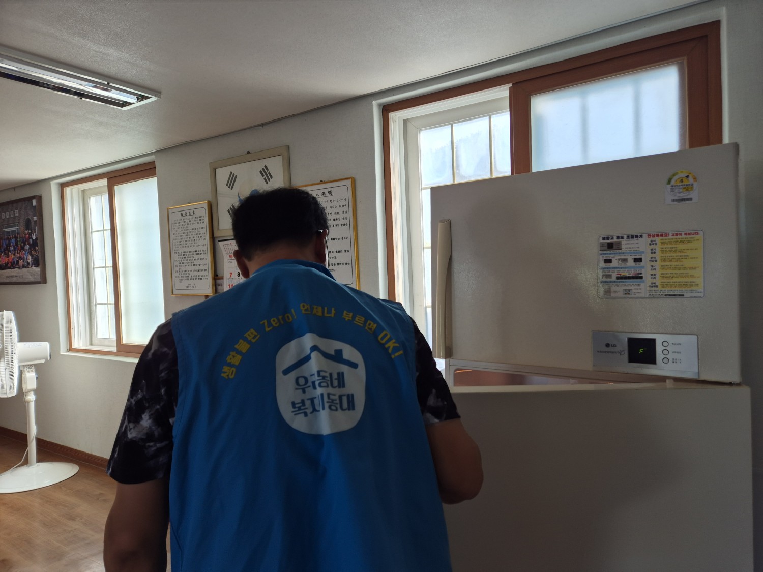 활동내용:마을 어르신들의 쾌적하고 안전한 환경 조성을 위해 복지기동대가 경로당을 방문하여 냉방 기기와 주방, 화장실의 안전 설비 등을 점검하고 개선 사항을 파악함.