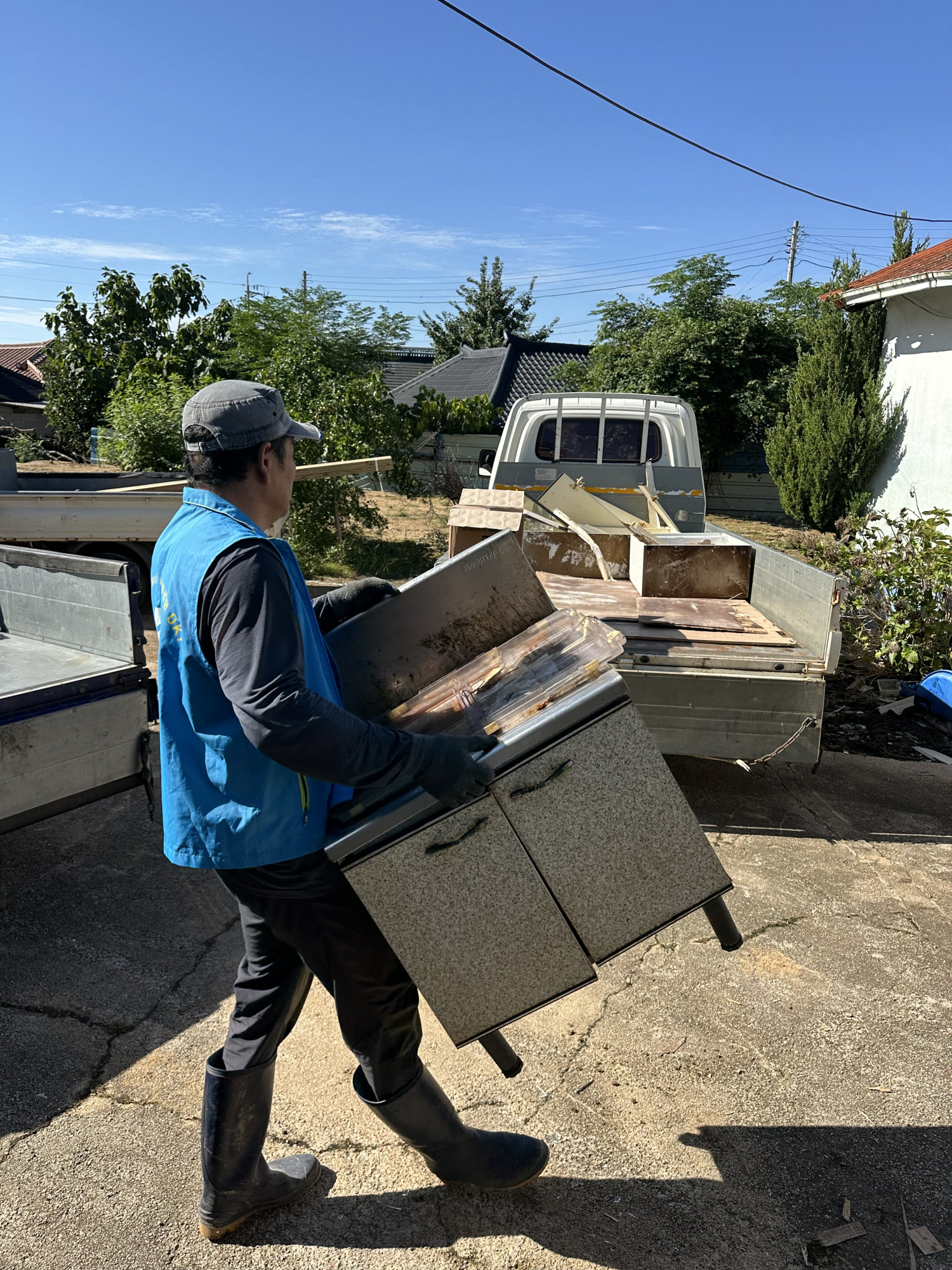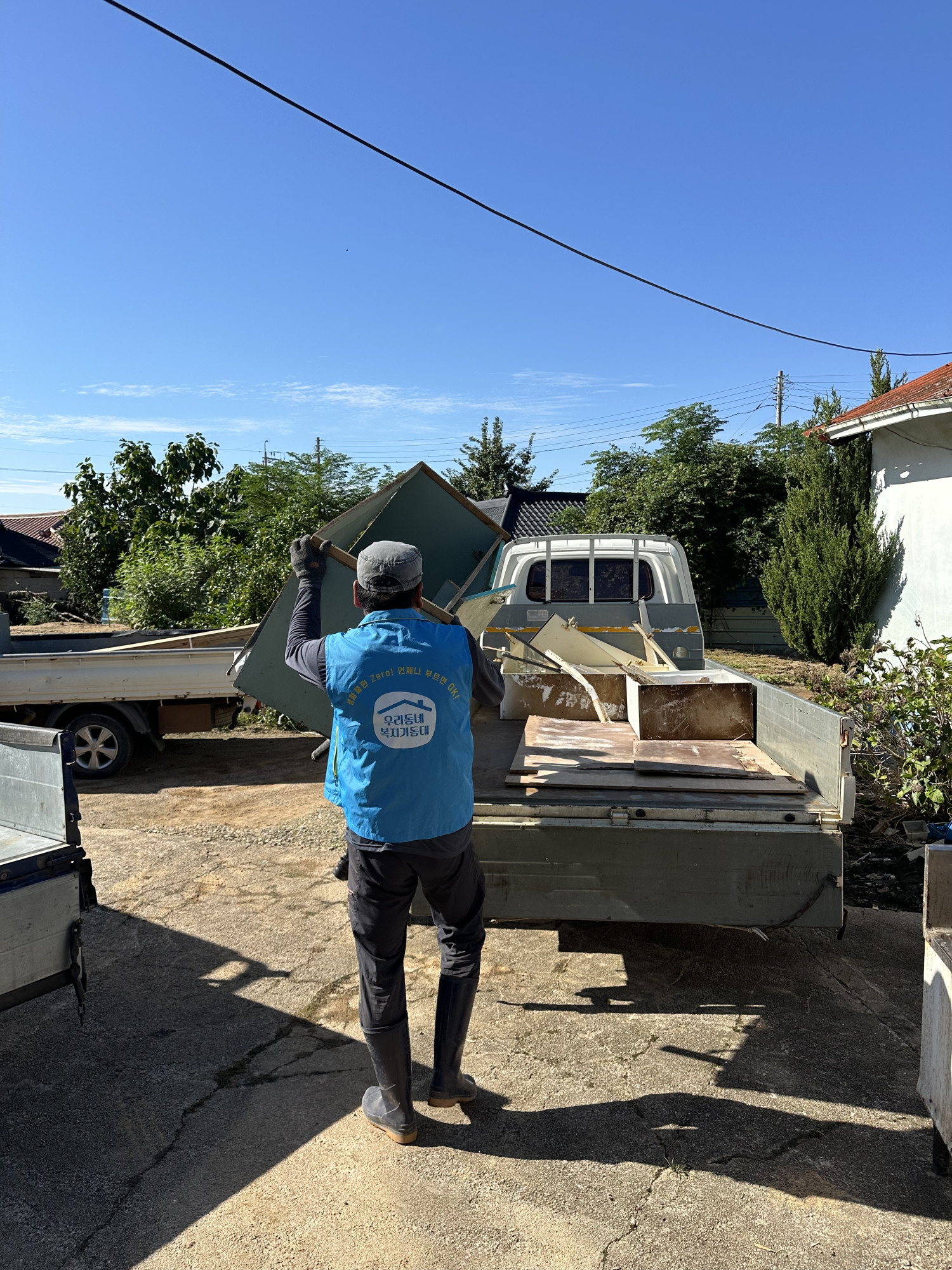 손불면 우리동네복지기동대장 및 대원 담당공무원들이 무더운날 구슬땀을 흘리며 생활공간이 깔금하게 정리 되는걸 보고