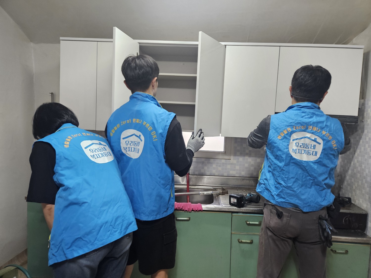우리동네 복지기동대가 대상가구 방문하여 주거개선을 실시했습니다. 싱크대 노후화가 심해 안쪽 그릇집기를 다 빼고 상부장을 교체했습니다.!!