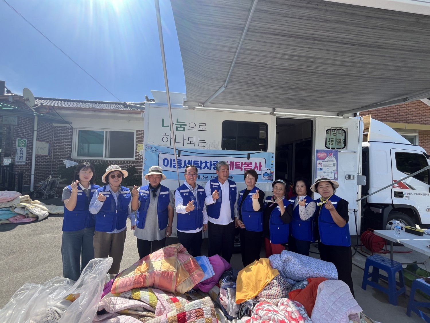 옥천면 백호마을에서 해남군자원봉사센터와 연계하여 ‼️빨래끝! 이동세탁차량 봉사‼️를 실시했습니다.