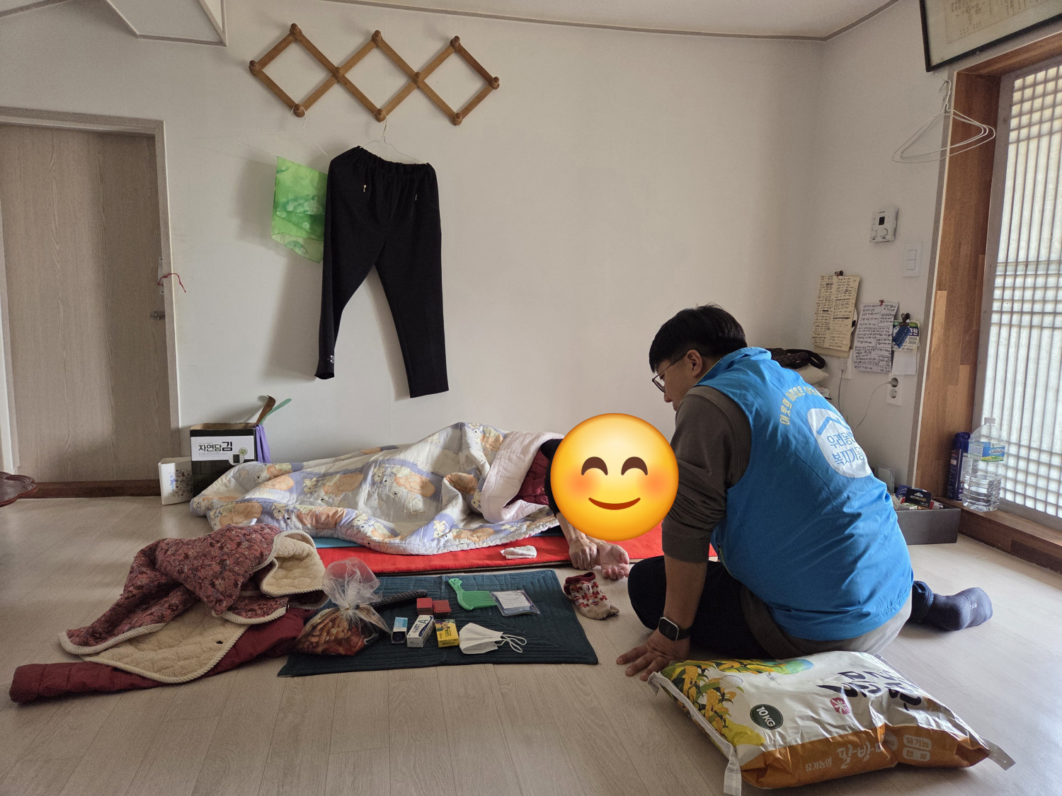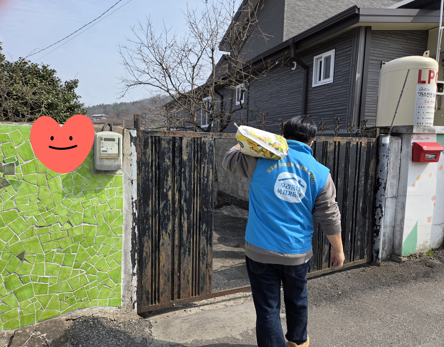허리 수술하고 퇴원 후 거동이 불편하신 어르신에게 양곡을 전달 하며 생활실태를 확인하고 안부를 살피고 왔습니다. 어려운 일이 있으면 언제든지 연락하라 당부한 후 무거운 쌀을 부얼에 내려주고 돌아왔습니다.