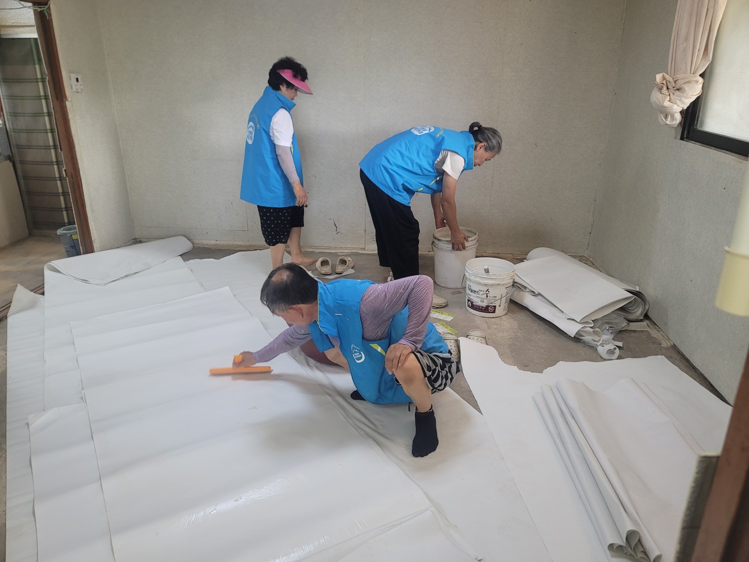 이번 폭우로 침수피해를 입은 저소득 6가구에 대하여 함평읍우리동네 복지기동대는 도배장판을 지원하였다