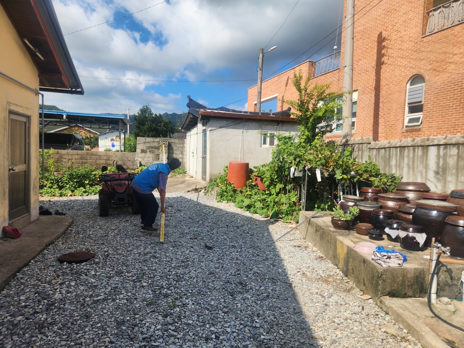 거동이 불편하여 평소 성인용보행기나 지팡이로 이동하시는데 집마당이 굵은 자갈이 깔려있어 생활하시는데 불편함이 크시다고 하십니다.
