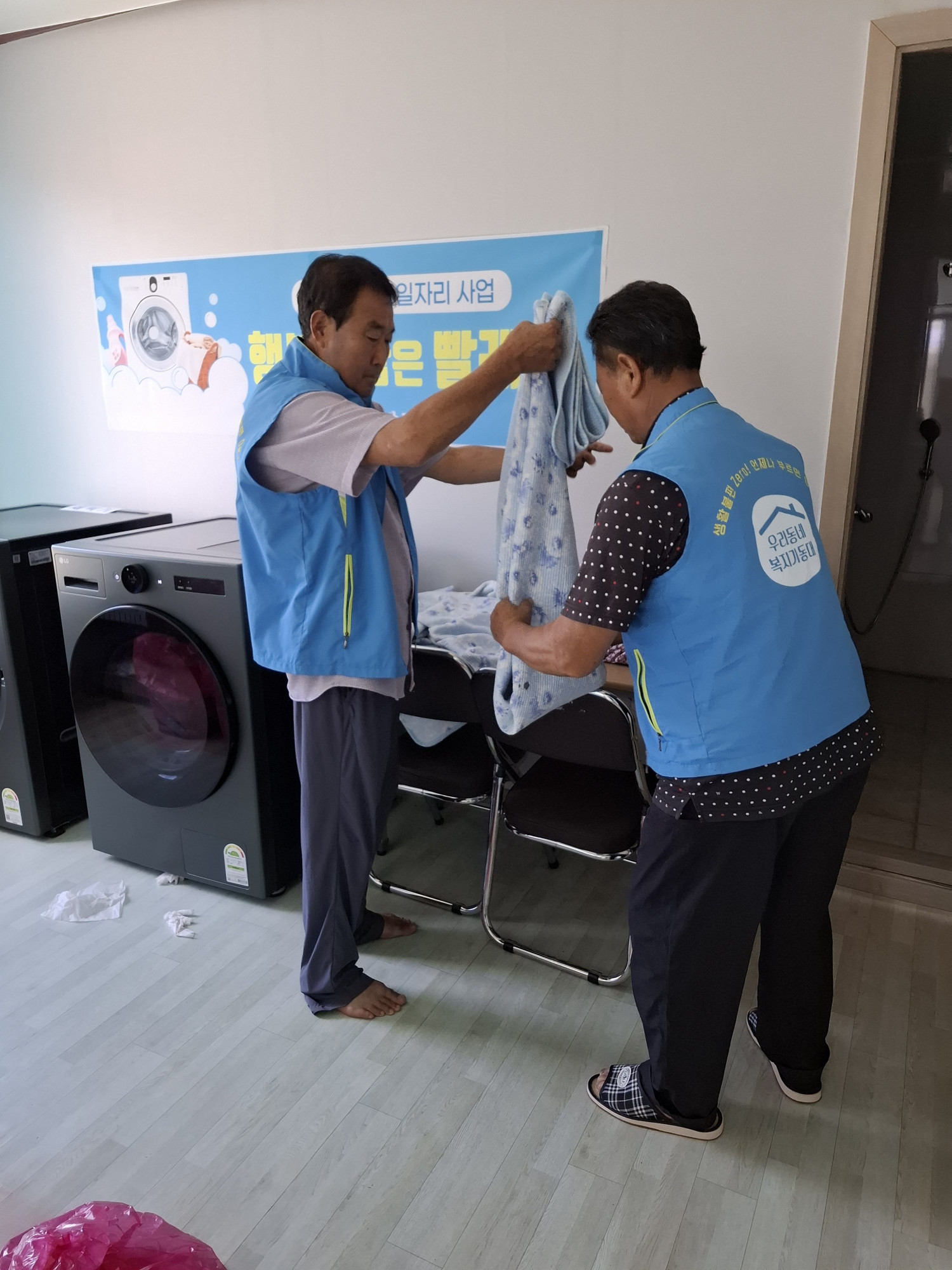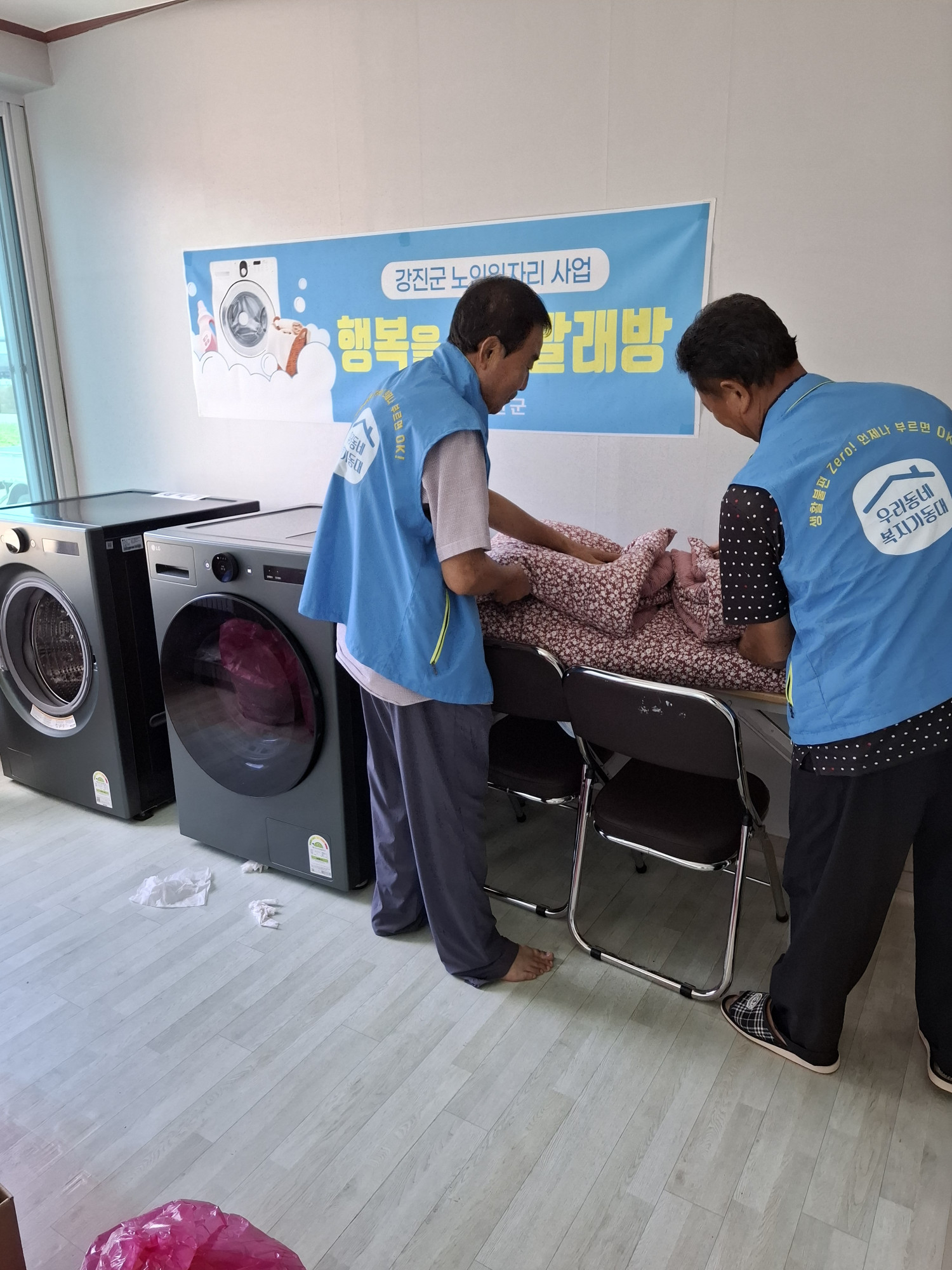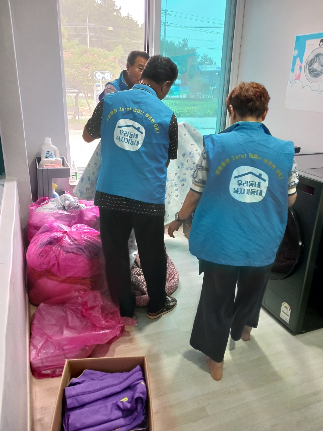 오늘 10시 거동불편 어르신 이불을 수거하여 복지회관에서 세탁건조 후 다시 가정으로 배달해드렸습니다.