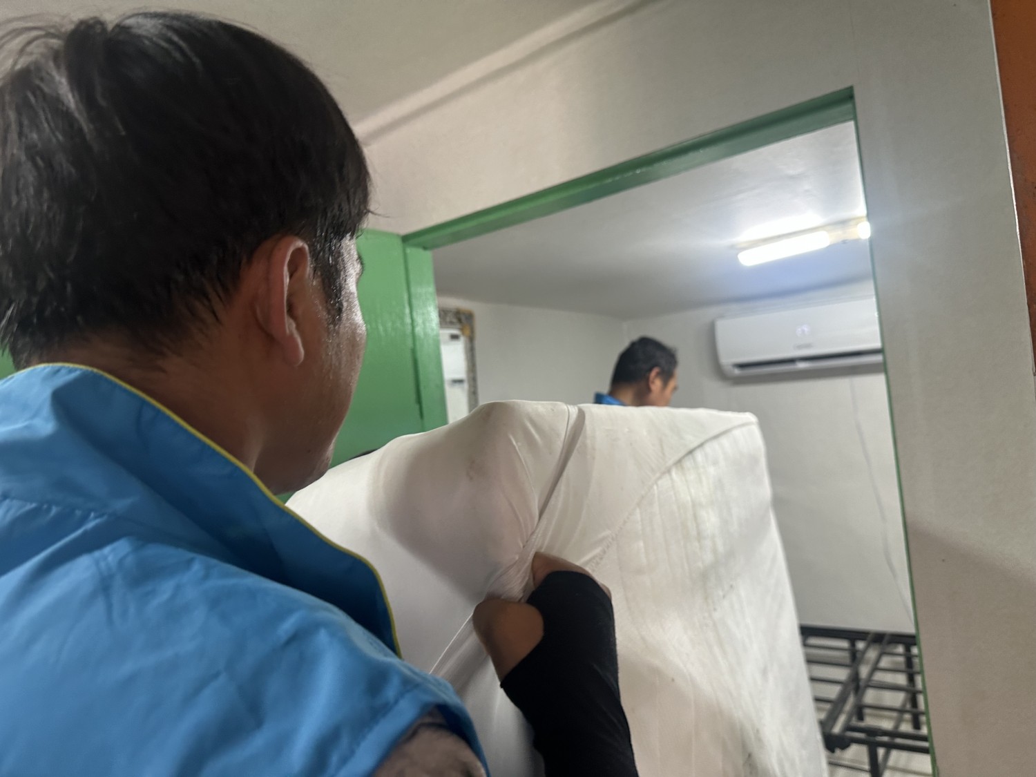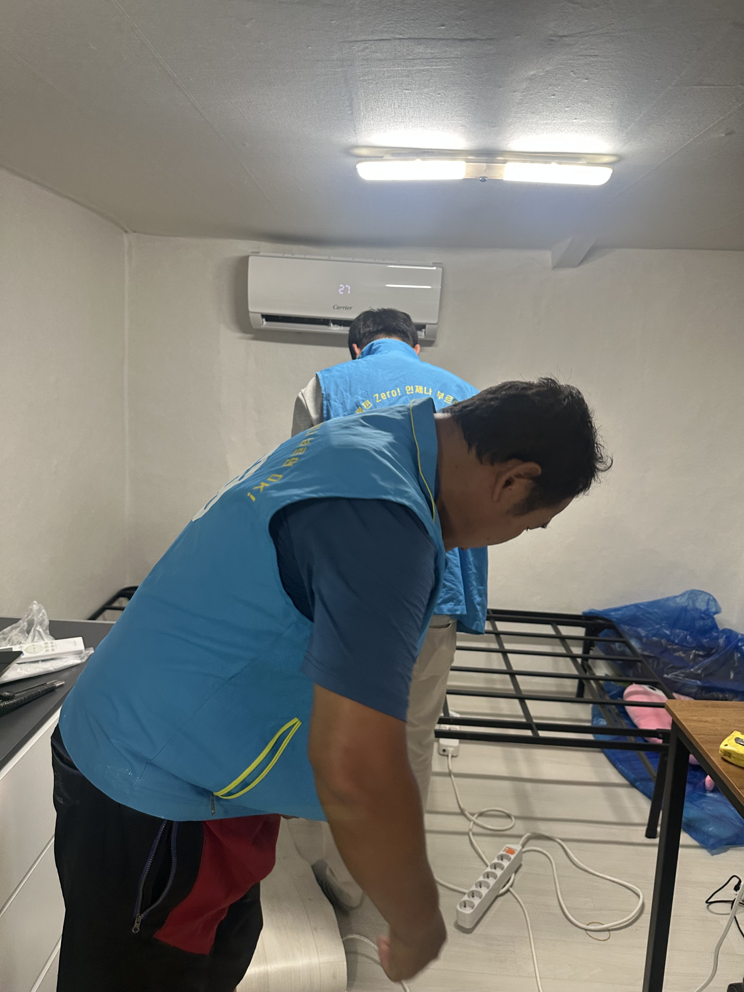 자녀가 있는 취약계층 가구에 에어컨 설치와 청소를 해드리기 위해 출동했습니다