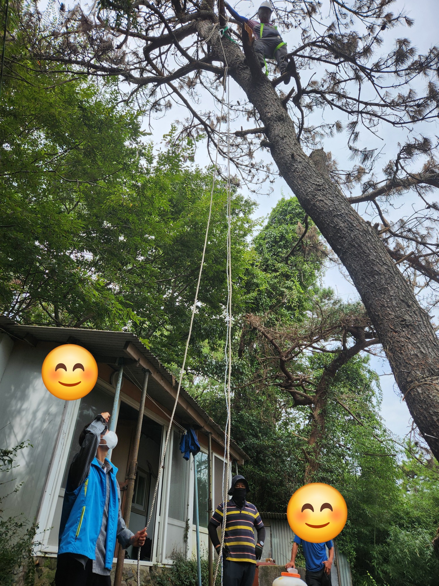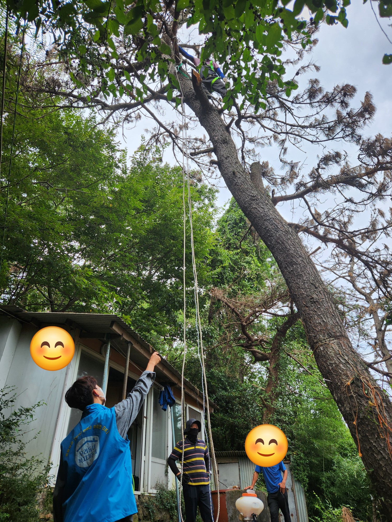 여수시 산림과와 복지기동대가 협업하여 마침내 나무를 다 제거하였습니다