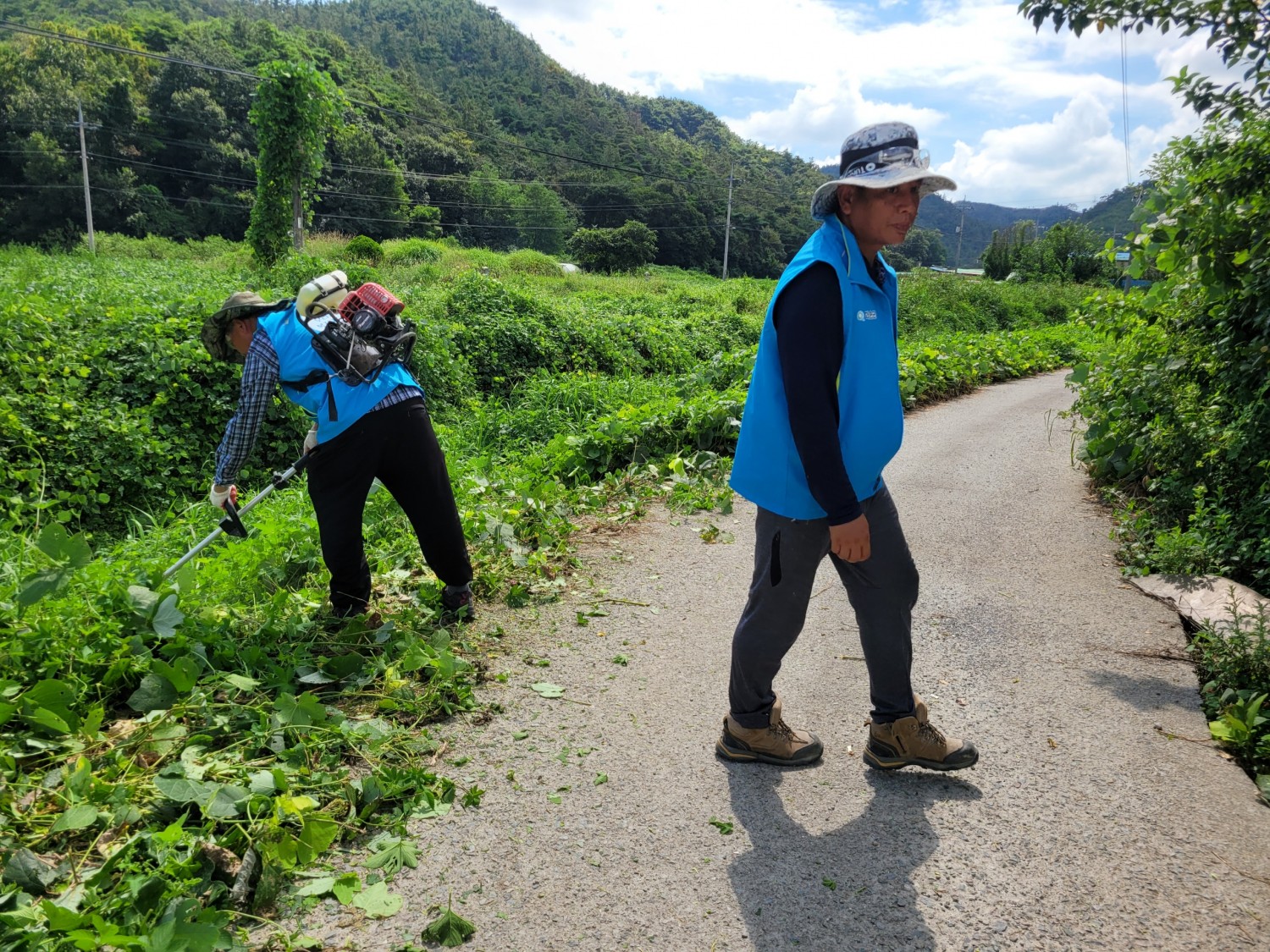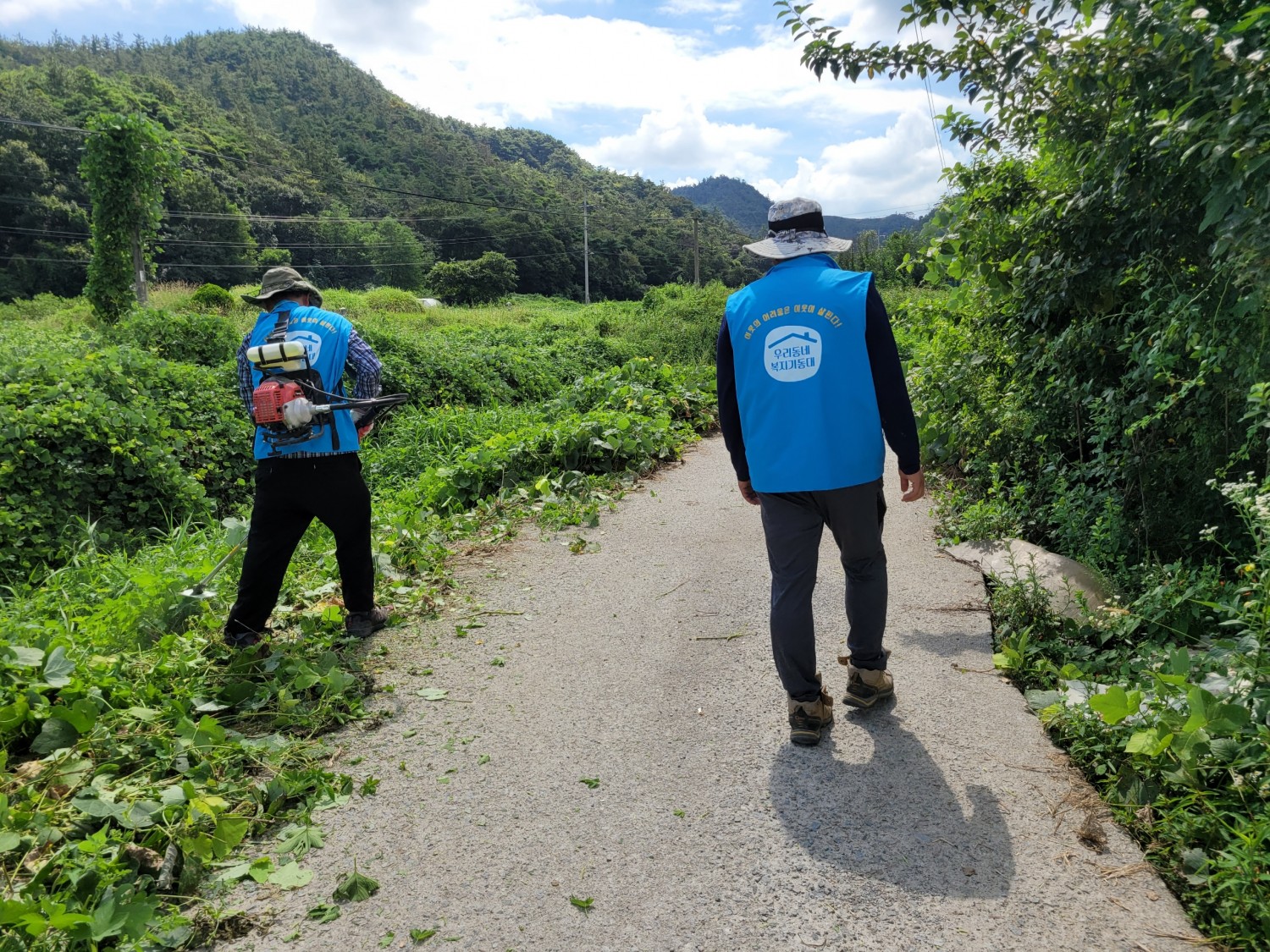 외딴곳에 홀로 어르신이 사시는데 도로가 잡초로 인해 승용차로 들어가기 어려웠습니다.