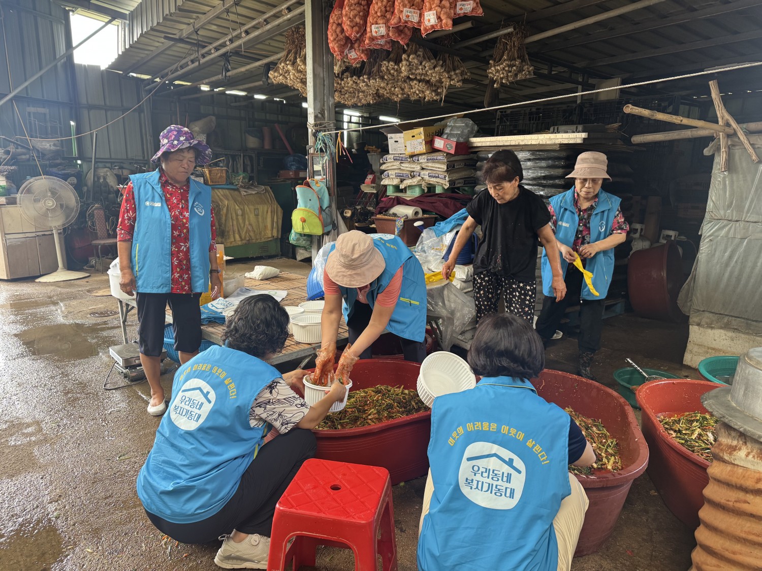 우리동네복지기동대에서는 지역 어르신들의 건강한 식생활을 지원하기 위해 물김치를 직접 담가 나눔 활동을 실시하였다. 이날 기동대원 15명이 함께 참여하여 정성껏 준비한 물김치를 관내 김치가 필요한 독거 어르신과 장애인 등 80세대에 전달하였다.