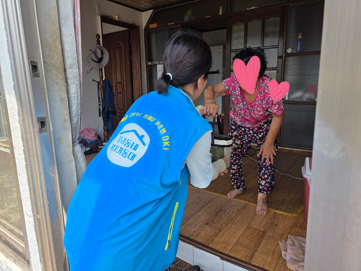 활동내용:복지기동대가 지역사회 내 돌봄이 필요한 독거어르신들을 대상으로 밑반찬을 만들어 전달하며 안부를 살피고 복지 사각지대를 예방하는 활동을 진행함.