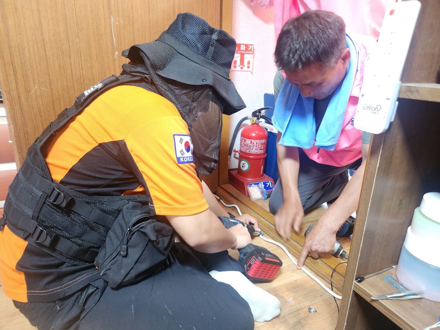 어제에 이어서 너무나 더운 오늘!!! 계곡면 복지기동대🤩와 119생활안전순찰대😍그리고 계곡면 의용소방대원과 함께 화재에 취약한 10가구를 방문하여 화재경보기설치, 노후 콘센트 교체, 소화패치 부착, 뿌리는 소화기를 지급해 드리고 왔습니다✨️