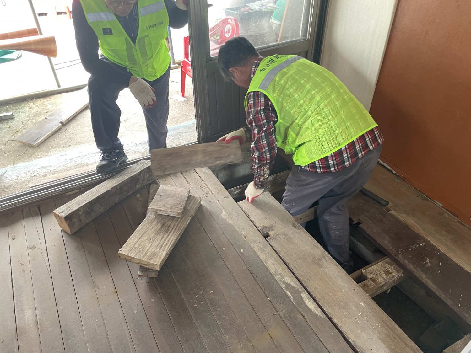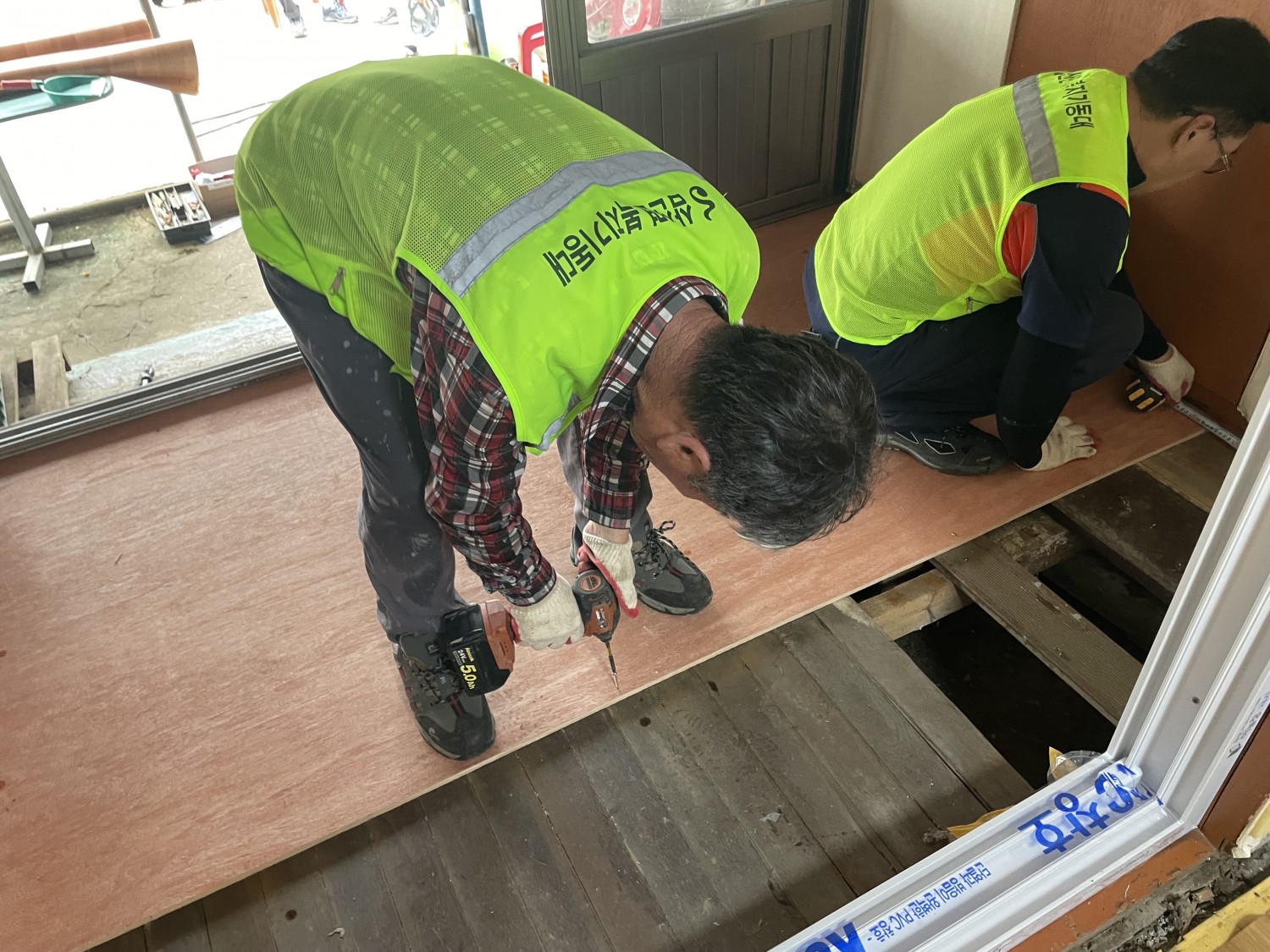복지기동대의 토방보수 작업