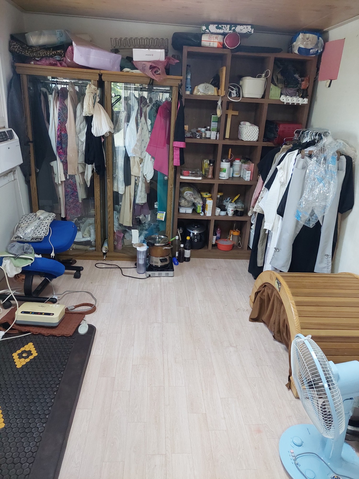 기초수급자 가구가 사는.컨테이나 내외부에는 짐들로 가득차서 발디딜틈이 없었는데 희망클린카 사업을 통해 많은 짐들을 정리하고 마무리 소독까지 지원해드렸습니다..