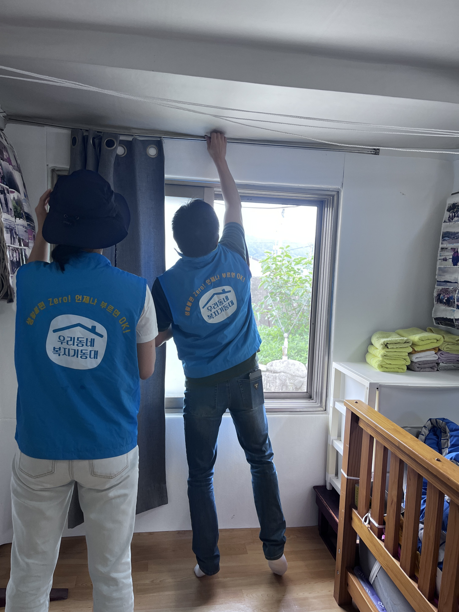 조도면 우리동네복지기동대는 주거환경이 열악한 취약가구를 대상으로 커튼 설치 지원 활동을 진행했습니다.
