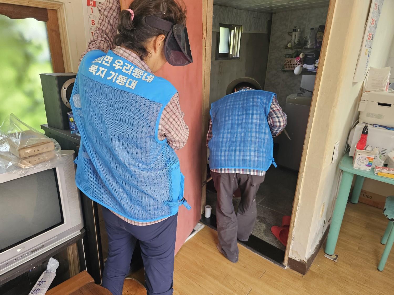 - 위기상황 : 안부확인차 가정방문 한 기동대원이 대상자와 면담 중 화장실 문이 오래되어 잘 닫히지 않아 불편하다고해서 복지기동대원이 면사무소로 생활불편 신고함.