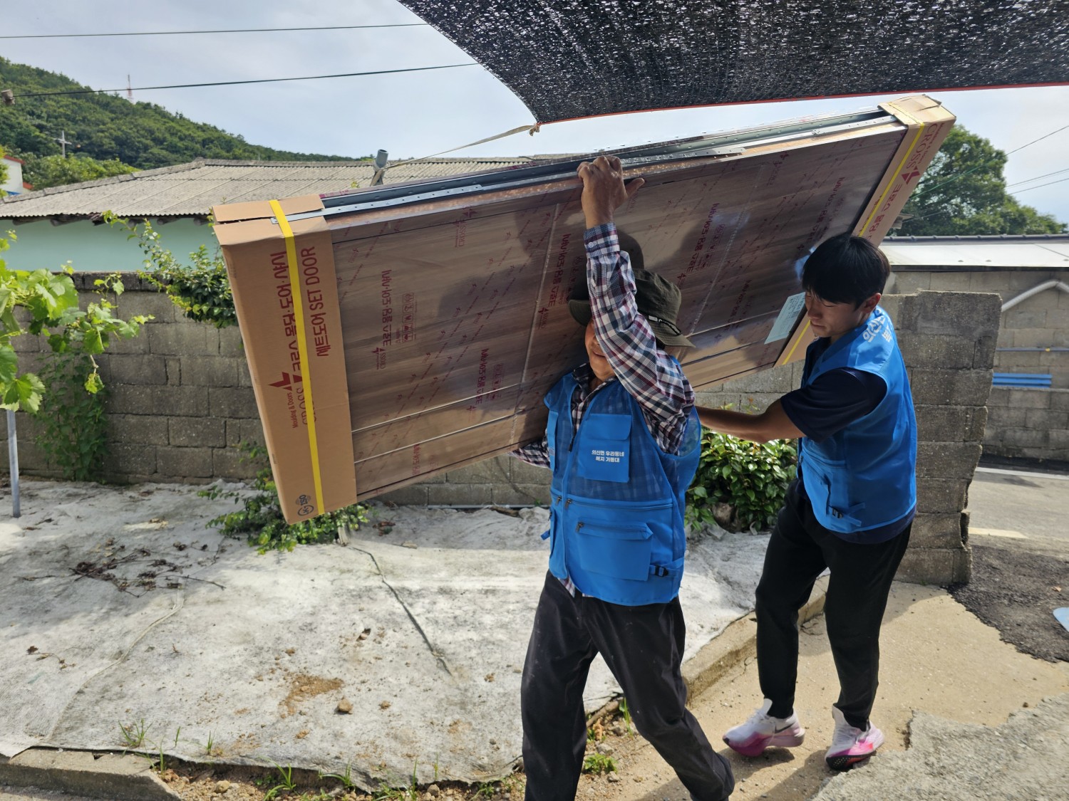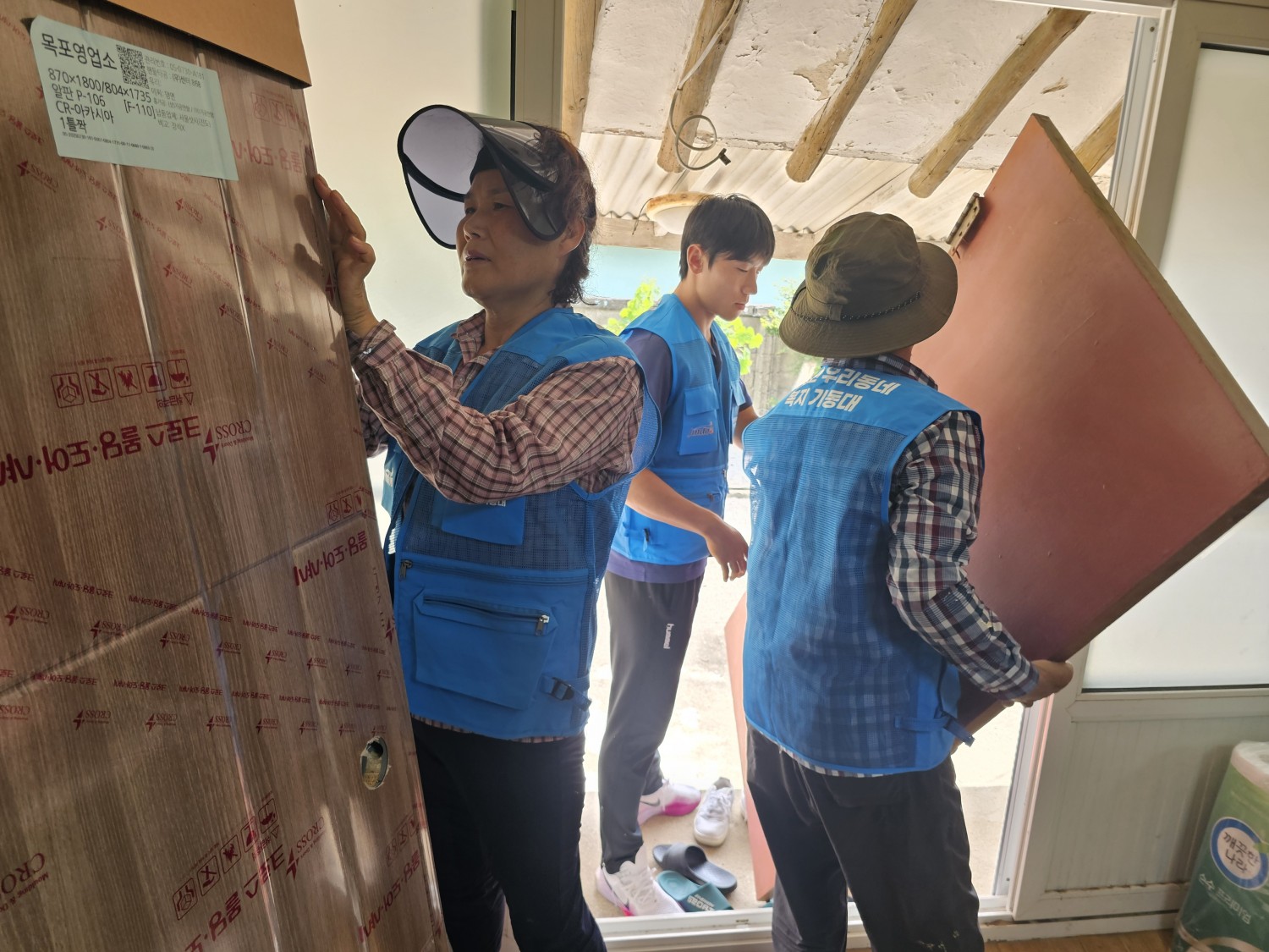 - 지원결과 : 오래된 나무문을 뜯어내고 새로운 도어로 교체해 드려 대상자가 매우 고마워하심.