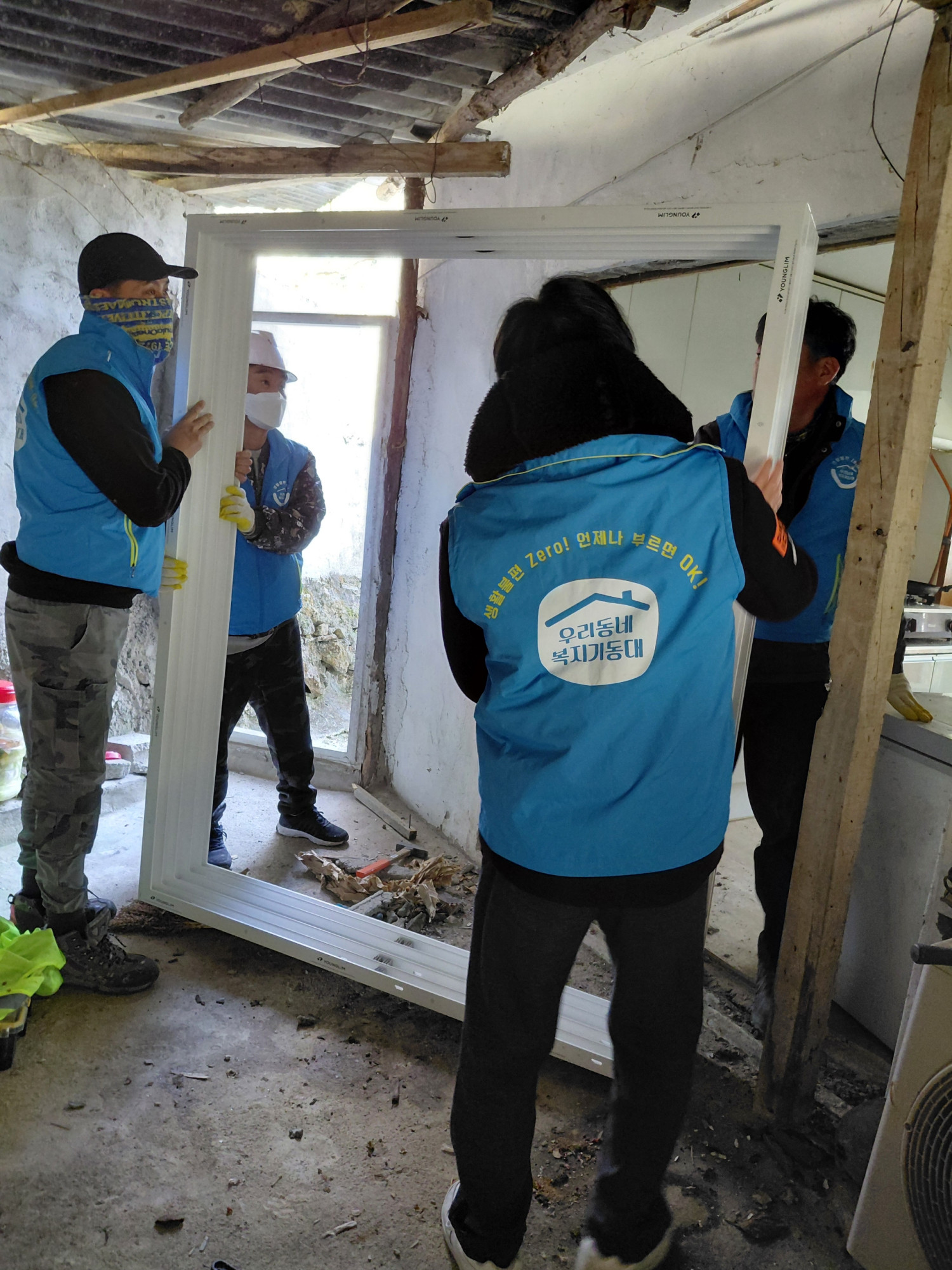 독거어르신의 따뜻한 겨울나기를 위해 복지기동대원들과 방문하여 창문 샷시, 방충망 교체 등 생활불편개선 사업을 시행했습니다