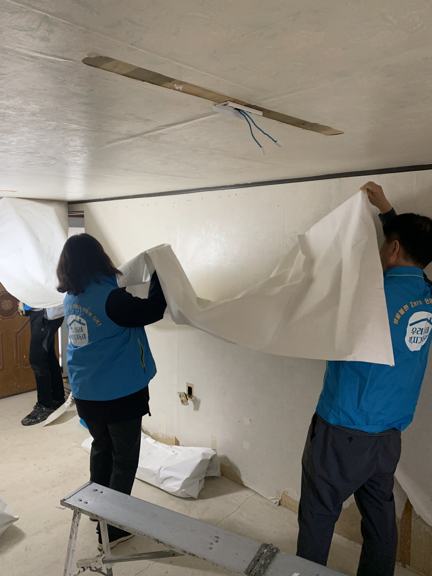 대상자가구는 작년4월 우리면으로 이사왔으며, 그동안 방치되어 있던 방에 도배장판교체 작업을 하였음. 비가 오는 궂은 날씨에도 불구하고 잘 마무리 되었음