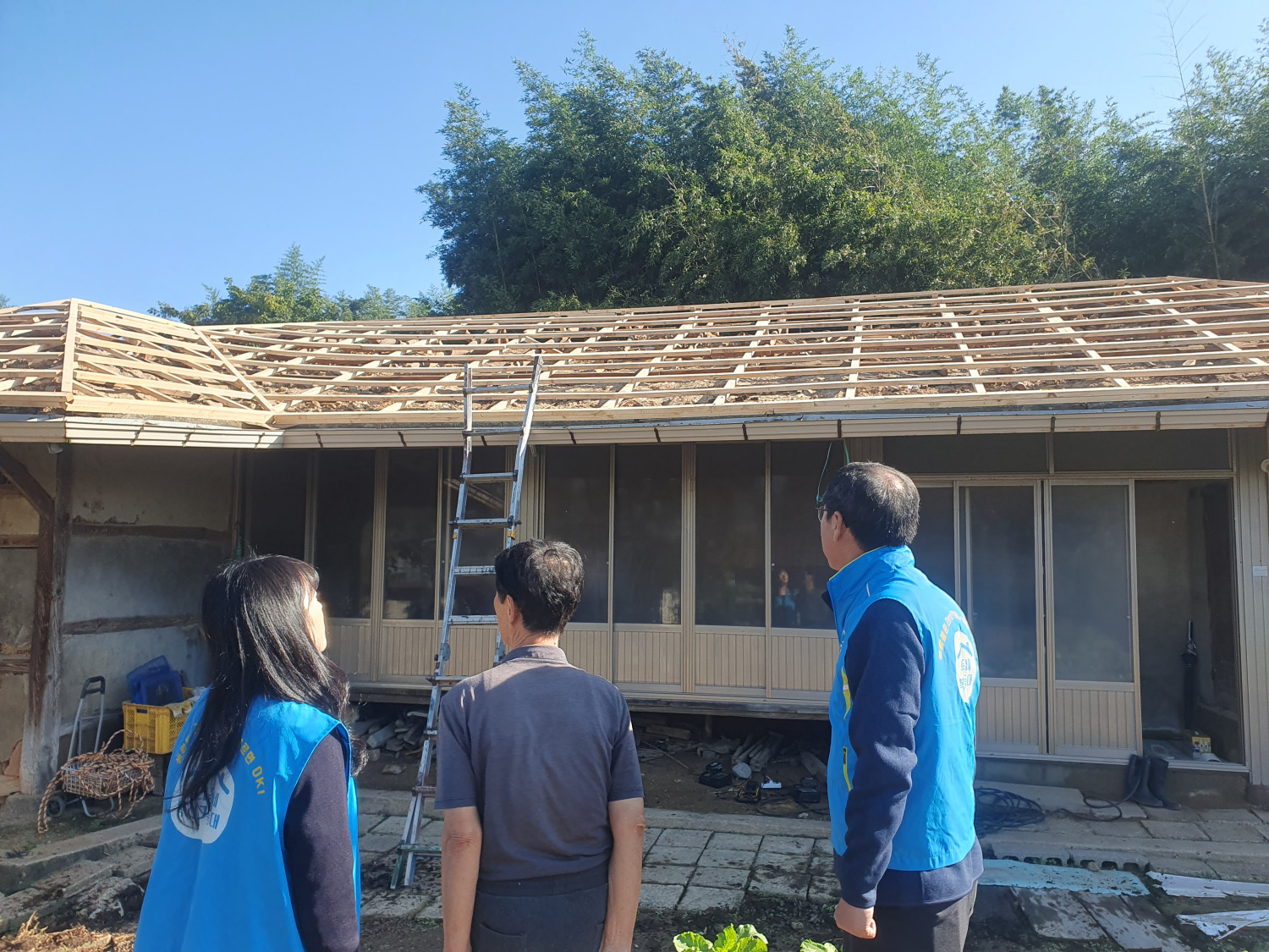 내 용:지난 7월말 집중호우로 주택 지붕이 파손되어 생활에 어려움을 겪고있던 관내 피해가구를 희망풍차 긴급복지 지원사업을 신청하여 지붕보수를 마무리하여 안전하고 쾌적한 주거환경을 제공하였다