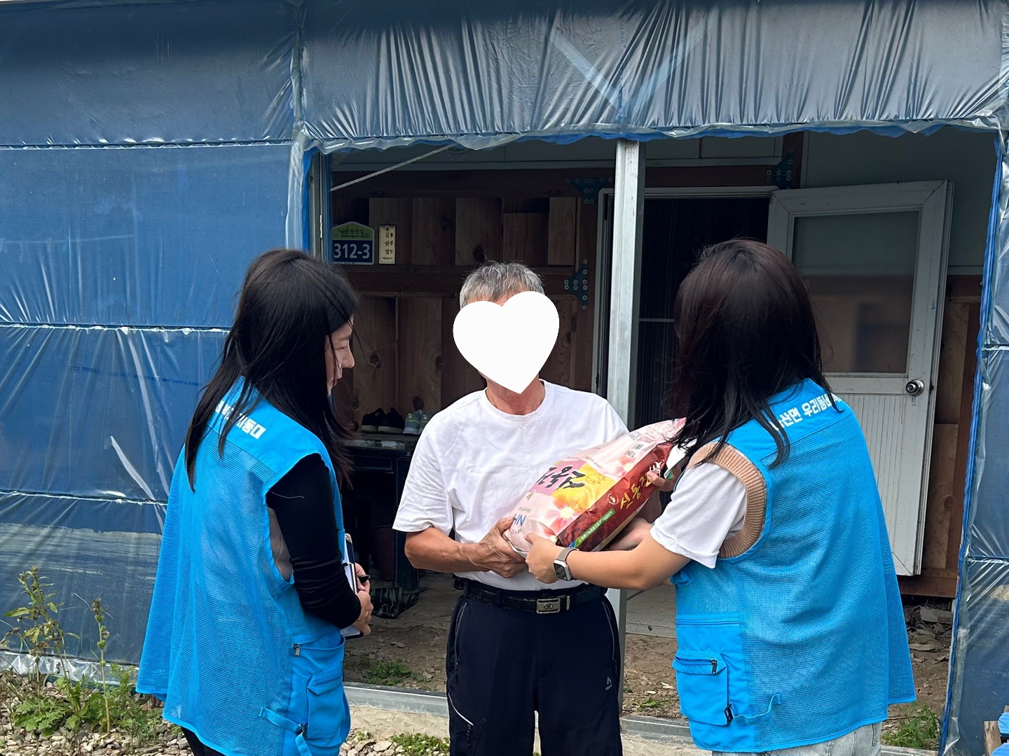 나산면 우리동네 복지기동대는 7-8월 집중호우로 인해 피해를 입은 가구를 찾아가 백미와 함평사랑상품권을 전달하였습니다.