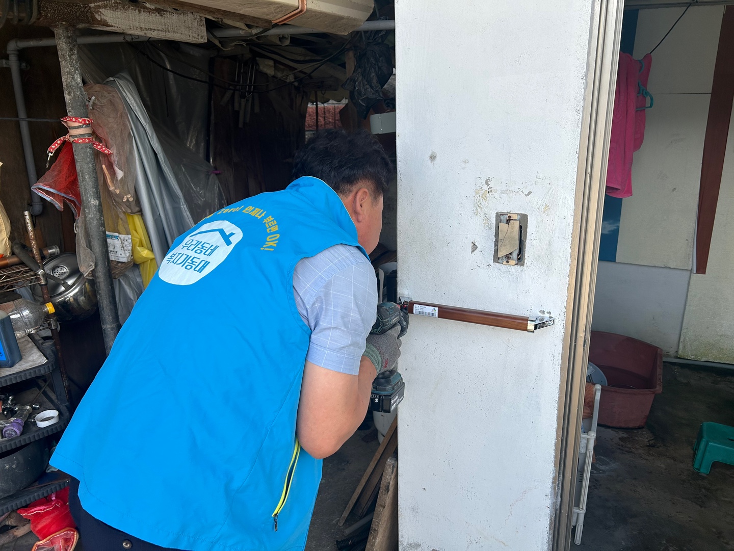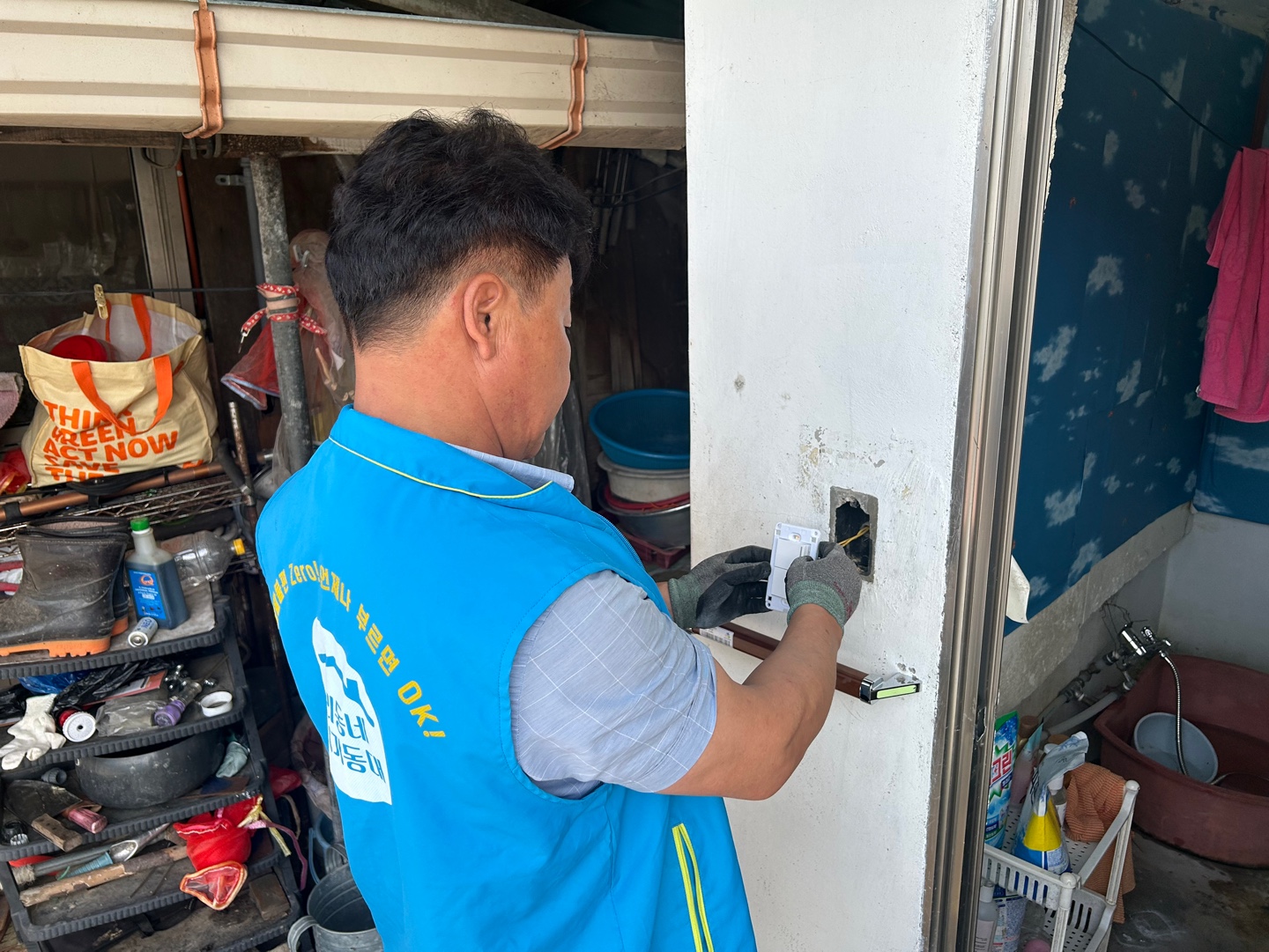 나산면 우리동네 복지기동대는 노후주탹에 거주하는 독거노인 가구를 찾아 안전손잡이 및 LED전등 설치, 누전차단기 및 전등스위치 교체를 진행하였습니다.