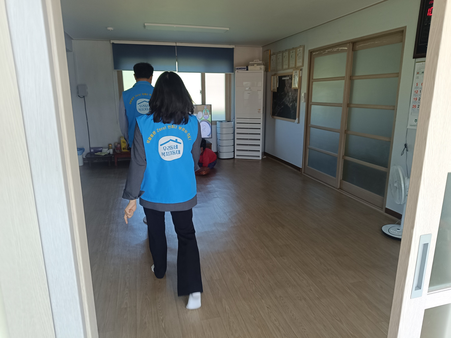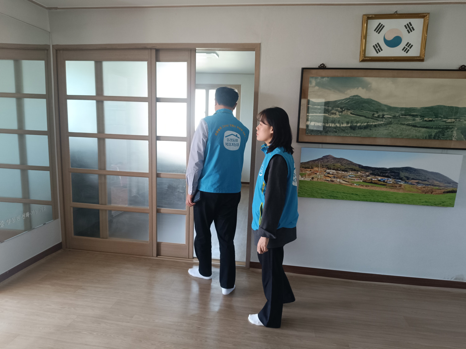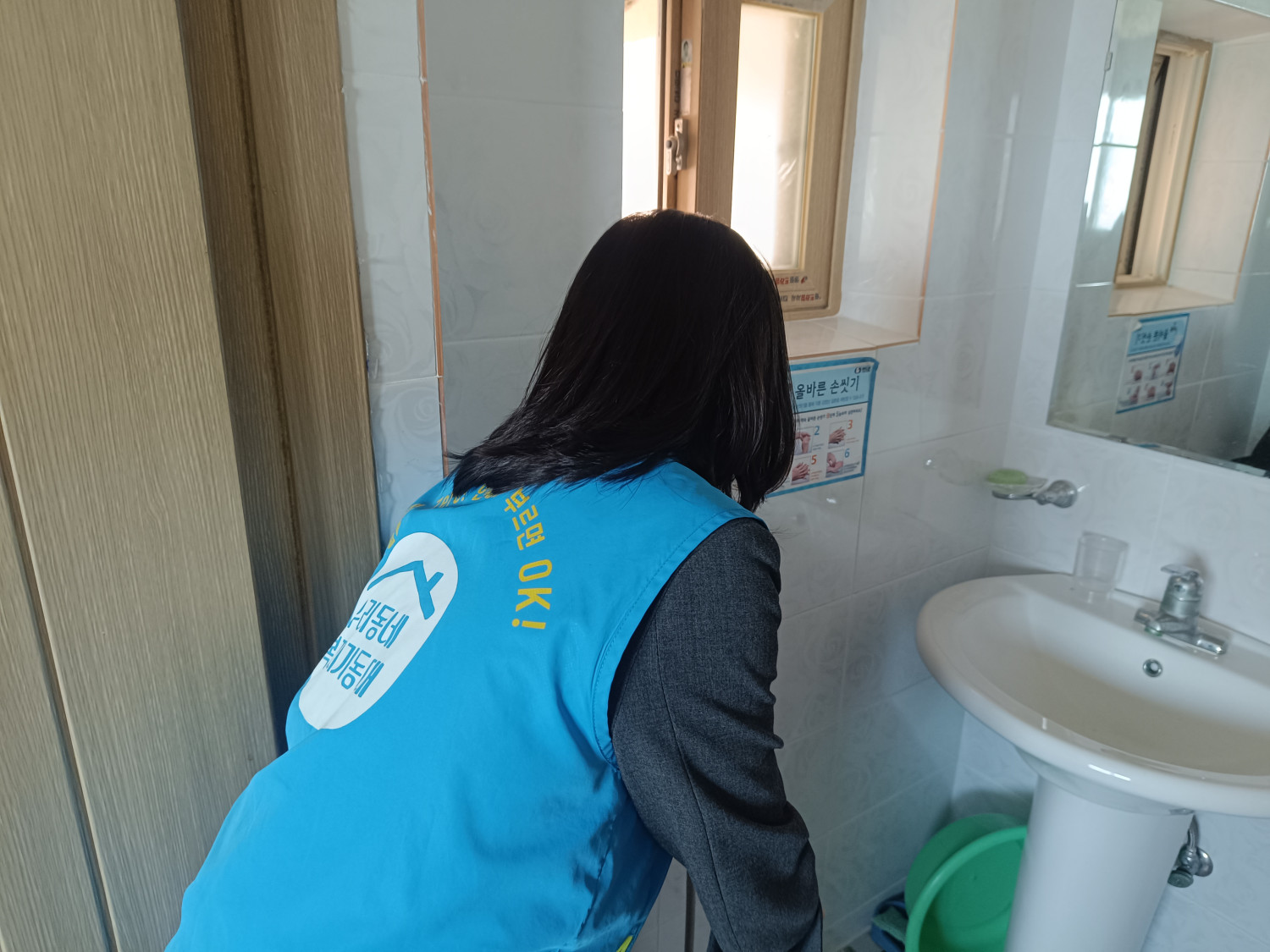 활동내용:마을 어르신들의 쾌적하고 안전한 환경 조성을 위해 복지기동대가 경로당을 방문하여 난방 기기와 주방, 화장실의 안전 설비 등을 점검하고 개선 사항을 파악함.